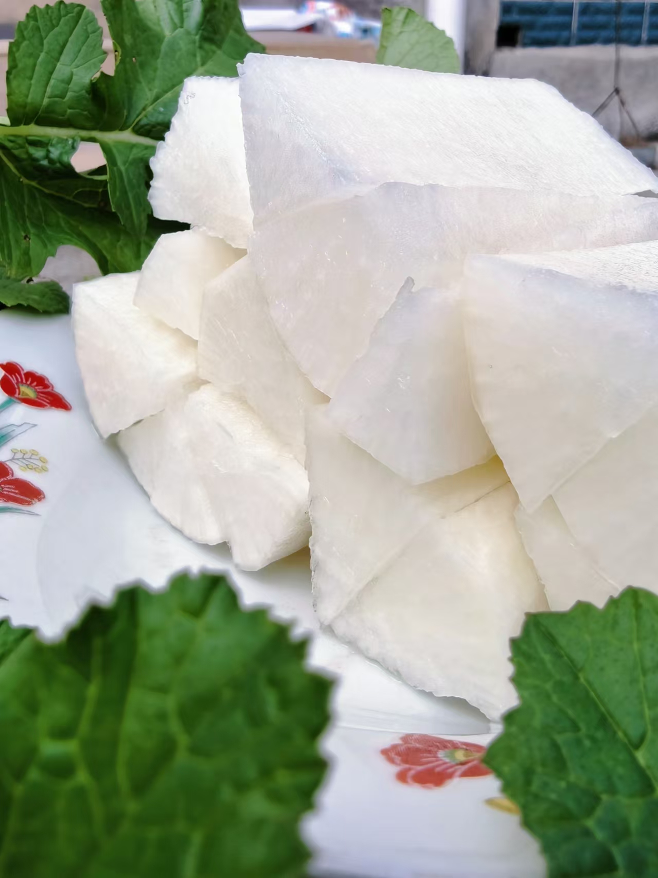 生吃的话,直接在萝卜地里拔出新鲜萝卜,去叶,削去皮,会发现闻不到一点萝卜的辛辣味,反而扑鼻而来有一股清香、微甜的自然气息,让人难以相信这真的是萝卜!咬一口,瞬间惊艳了!果肉脆嫩爽口,汁水丰富,咔嚓咔嚓几口下肚十分爽快。脆甜多汁,不知道的还以为在吃水果,怪不得当地人叫它水果萝卜。