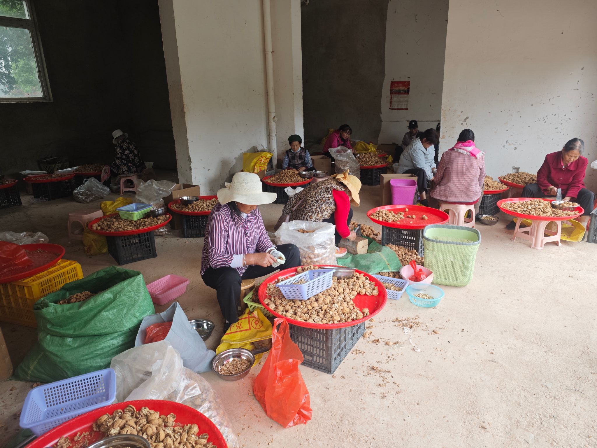 在斗山、黄陈、黄家等村组,围绕“银发工坊”模式,设立轻体力岗位50余个,为60岁以上老人和困难群众提供剪菌根、剥核桃等劳动岗位,每人每天可增收20—50元。仅火星土城善优农业核桃加工车间,已为416人提供就业服务,累计发放工资48.9万元。