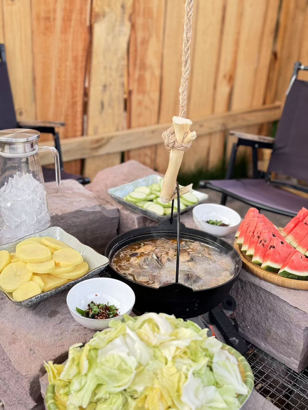 孩子们在回味菌孢菌丝之余,土鸡炖菌已经上桌。游客们围坐一桌,吃着香气扑鼻的菌子火锅,确认过眼神,都是爱火锅的人,才感觉到“独乐乐”不如“众乐乐”的吃法,这才是人间至味。