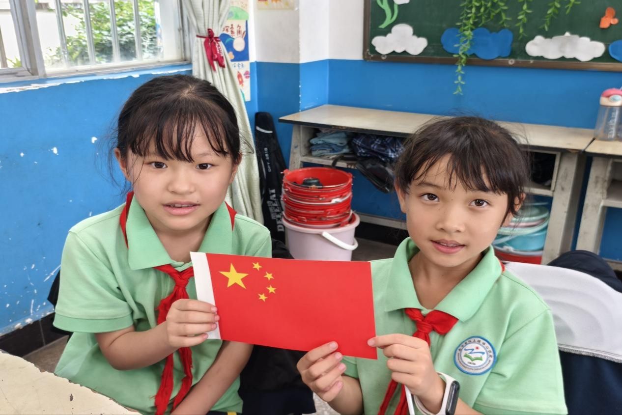 时值中国人民抗日战争暨世界反法西斯战争胜利80周年,支教团队特别设计了“铭记历史,开创未来”主题教育活动。通过地图讲解、抗战故事重温、国旗制作等形式,开展爱国主义教育。当讲述至南京时,孩子们与成员共同激昂高呼:“抗战胜利了!”,最令人动容的是,成员组织孩子们在操场整齐列队,共同组成庄严的“80”字样。孩子们齐声高喊:“铭记历史,珍爱和平,祖国未来,我辈担当!”铿锵誓言回荡在红土坡的上空,也将爱国与责任的种子深植于心。