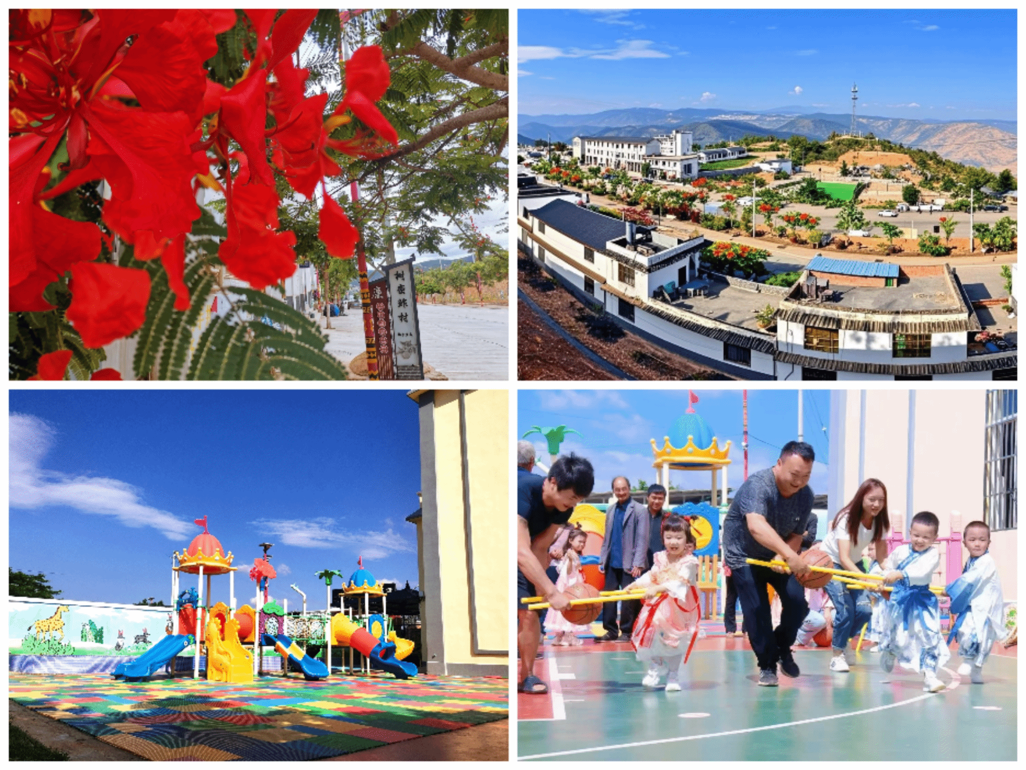 民生底色,绘就宜居画卷。走进幸福新村,完善的公共服务设施是最直观的“幸福密码”。罗武庄中心幼儿园作为云南省一级三等幼儿园,占地2000平方米,1200平方米的现代化园舍与615.5平方米绿化景观相得益彰,为孩子们提供了优质的学前教育环境;“幸福食堂”聚焦餐食服务,实行差异化供给:80周岁及以上老人可免费享一荤三素,80岁以下群众仅需8元左右,就能吃到两荤两素的营养餐。此外,标准化足球场、健康公园、新能源汽车充电桩等设施一应俱全,满足村民运动休闲、绿色出行需求。这些民生工程的落地,让乡村生活既有“乡土味”,更有“便捷感”,不仅让搬迁群众“稳得住”,更让“家”的归属感愈发浓厚。