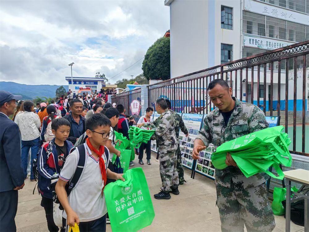 在强化武装巡护的同时,本届护鸟周积极构建“线上+线下”立体宣传体系,线上通过微信公众号、工作群推送野生动物保护法规、典型案例及科普知识,让保护理念触达更多群众;线下,普法宣传队走进保护区周边法空、唐家、波罗、后山等村委会、学校及乡镇集市,通过发放材料、现场讲解等方式,提升群众保护意识,推动形成全民参与的良好氛围。