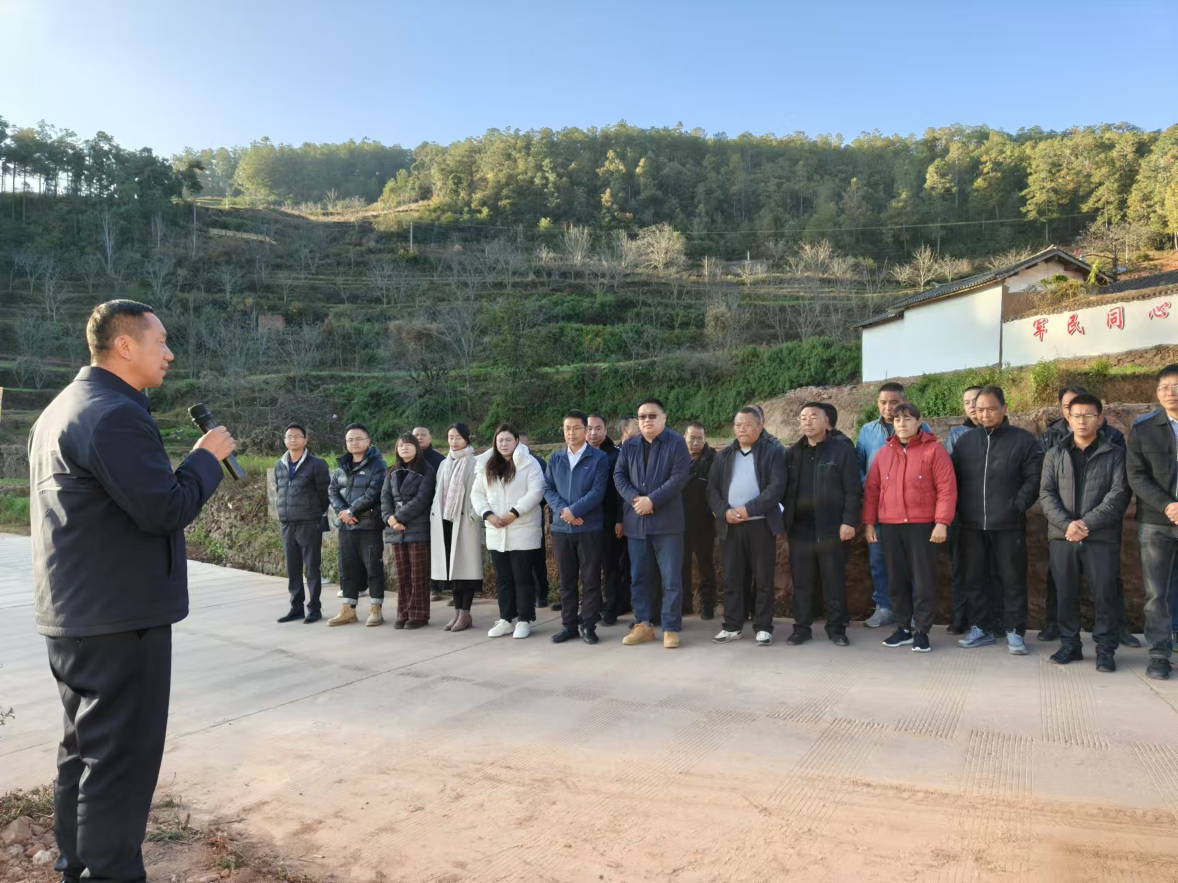 会议主要分为两个阶段,第一阶段为现场观摩学习,围绕农村人居环境、产业发展等重点工作,与会人员先后到瓦黑井村委会大田爱国主义教育基地、下瓦小组、上瓦小组进行现场观摩学习,在观摩过程中,镇武装部部长、瓦黑井村党总支书记对瓦黑井村大田爱国主义教育基地建设情况作介绍;瓦黑井村党总支书记就下瓦小组人居环境示范点打造过程中的经验作法做简要分享交流;南华县佳辉种养殖专业合作社负责人对瓦黑井村上瓦小组林下经济(刺头菜)产业发展情况规划、基地规模作介绍。通过实地“走一走”、现场“看一看”、认真“听一听”的方式发挥现场推进会实地观摩学习实效。