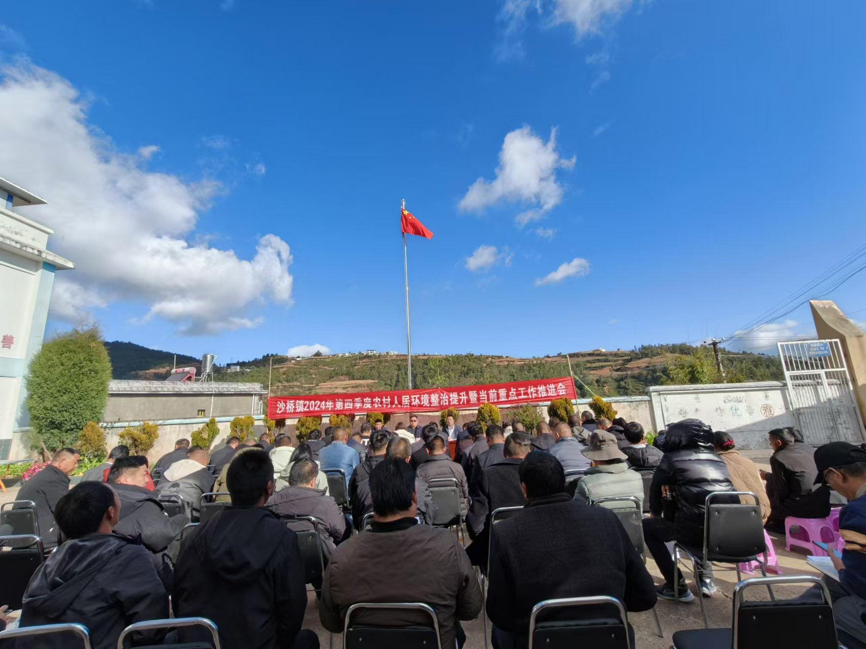 现场观摩结束,与会人员在瓦黑井村参加2024年四季度人居环境整治提升调度会暨重点工作推进会议,分管领导对2024年四季度人居环境整治提升考核考评结果进行通报,评比结果前3名的村委会授予红旗并作经验交流分享发言;评比结果后3名的村委会被授予黄旗并作表态发言。各党政班子成员就各自分管领域,对“三农”工作、农村公路养护、耕地流出整改、基层党建、村级集体经济、人居环境整治、安全生产、烤烟生产、巩固拓展脱贫攻坚成果同乡村振兴有效衔接、民生工作等当前重点工作作部署要求。镇人民政府镇长作当前重点工作安排部署,镇党委书记作会议总结讲话。