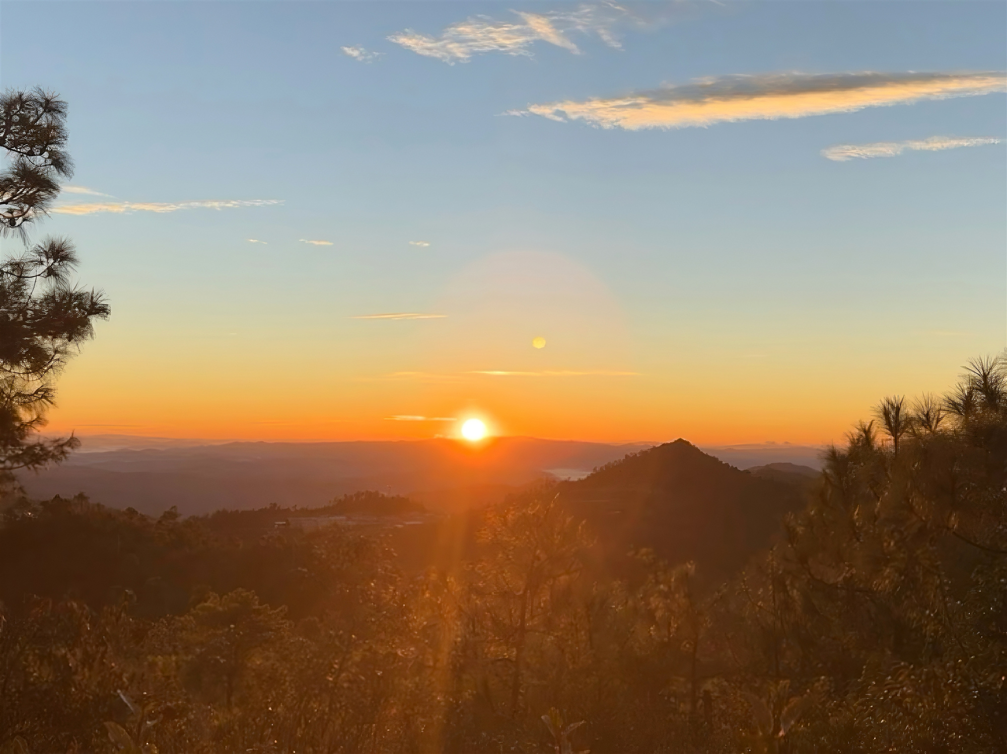 站在马缨花谷的观景台上,眼前是一片开阔的山谷。随着天边的云彩渐渐被染上金色,一轮红日缓缓升起,将大地从沉睡中唤醒。那一刻,光影如诗如画,仿佛大自然的画师在这里挥洒着无尽的创意。