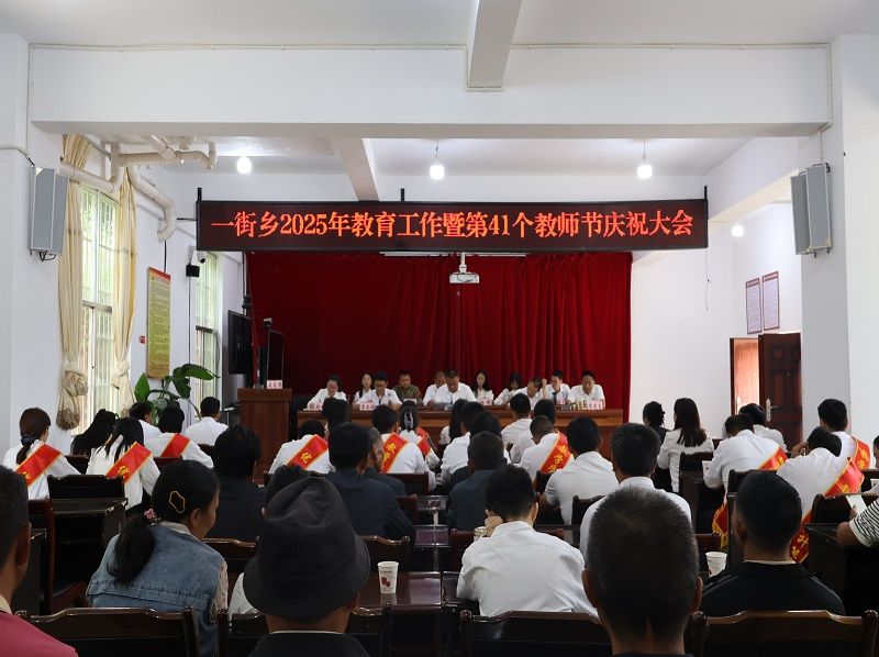 秋兰飘香,硕果盈枝。9月10日下午,一街乡隆重召开2025年教育工作暨第41个教师节庆祝大会。乡党政班子成员、各校(园)代表、站所负责人及村党总支书记和捐资助学企业共80余人齐聚一堂,共同向全乡教师致以节日的问候与崇高的敬意。
