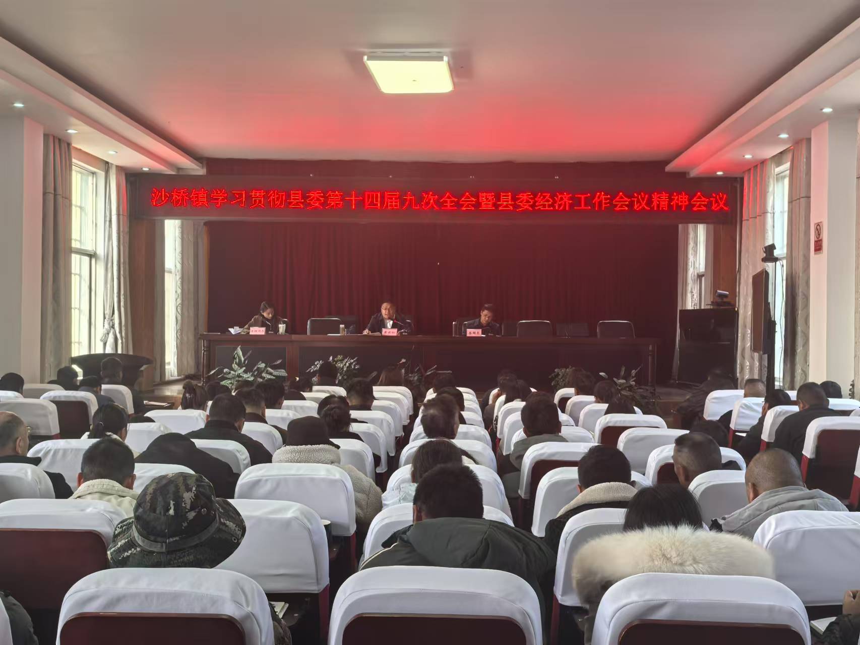 1月6日,沙桥镇召开干部职工学习例会,专题传达学习县委十四届九次全会暨县委经济工作会议精神,并就贯彻落实会议精神,抓好2025年全镇重点工作进行安排部署。镇党政班子成员、全体干部职工参加会议。