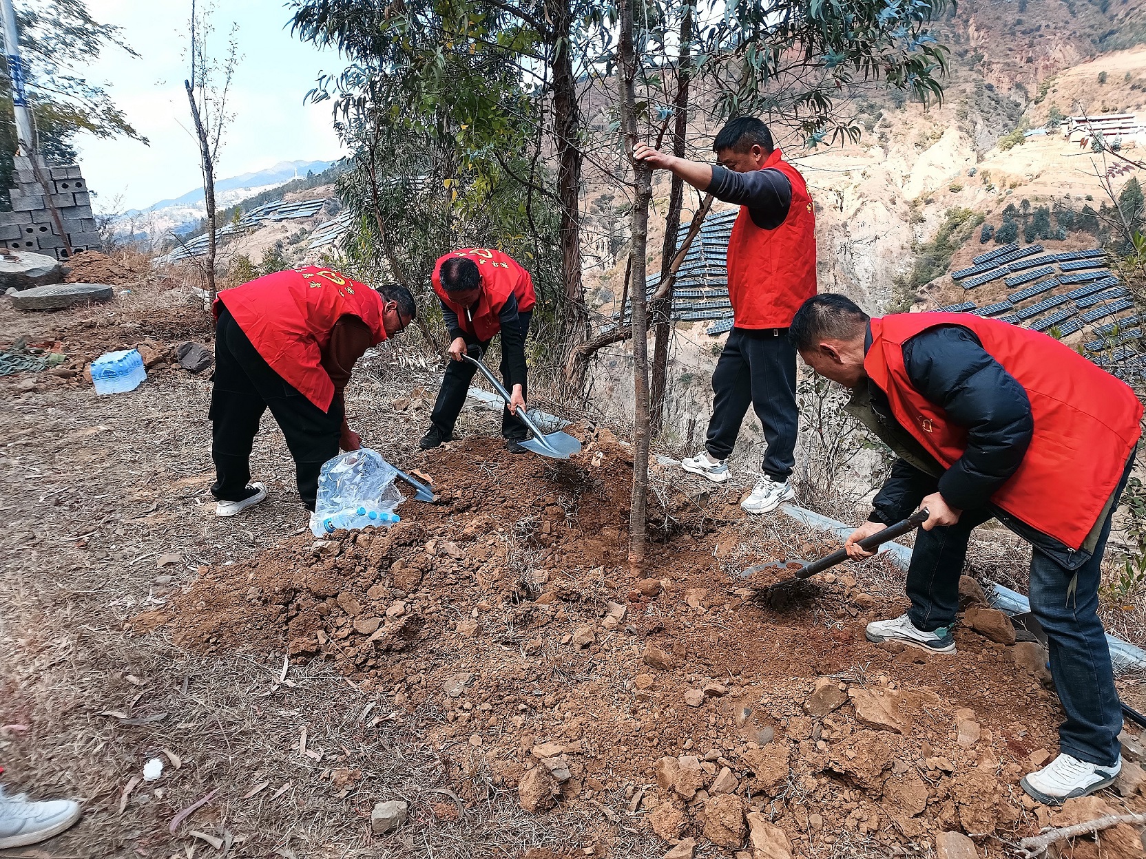 活动当天,全乡干部职工及护林员早早来到植树现场,大家热情高涨、干劲十足,积极投入到植树活动当中。有的挥锹铲土,有的扶苗培土,有的提水浇灌,每个环节都衔接有序、有条不紊。在大家的共同努力下,482棵树苗顺利在一街“安家落户”,它们随风摇曳,焕发出勃勃生机,为绿美一街建设增添了一片新绿,形成一道靓丽的绿色风景线。