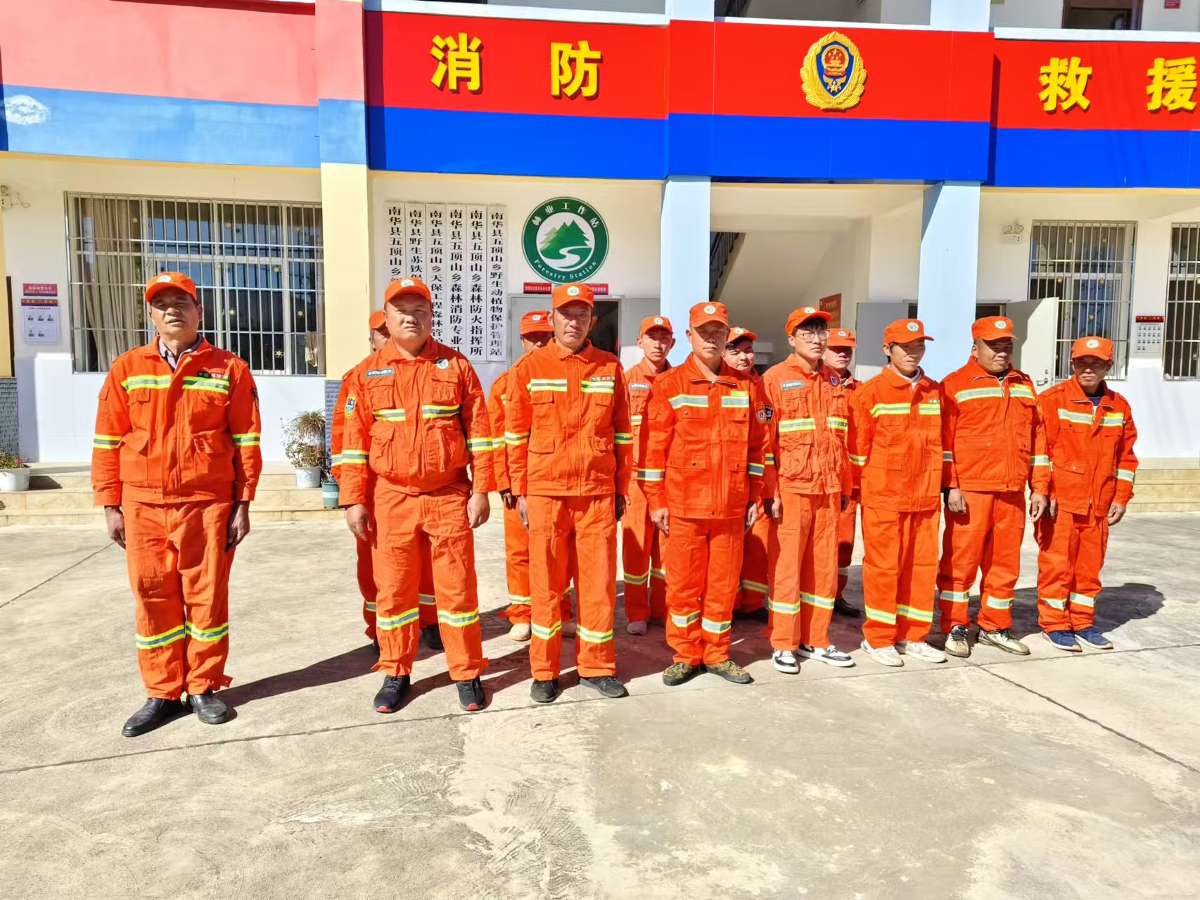 队伍建设到位。成立了党委书记、乡长双组长的森林防灭火工作领导小组,组建了一支15人的乡级森林防火应急队伍,明确每名防火队员扑火工具、乘坐车辆,各队员均配备风机、打火棍、砍刀等,确保应急队伍拉得出、冲得上,打得赢,实现打早打小打了。同时,各村委均成立了一支不少于10人的防火应急队,通过微信群、电话、短信等形式实现“1对多”快速召集人员,实现森林防火网格化队伍全覆盖。