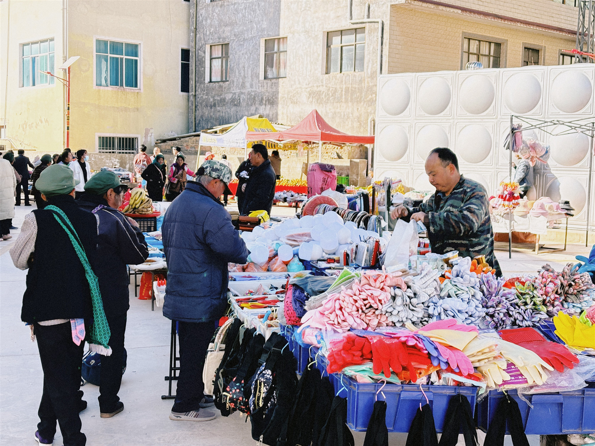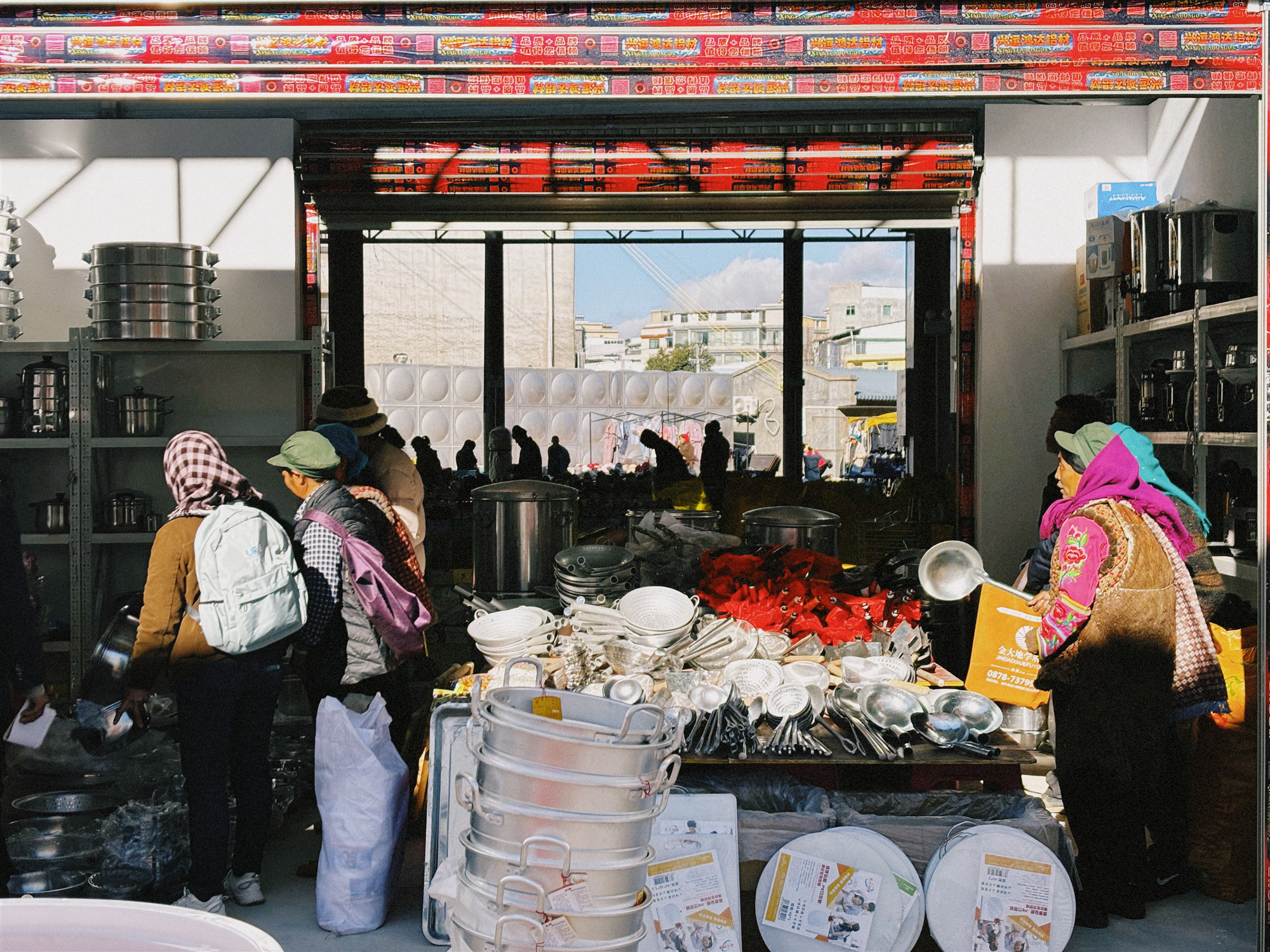 日用百货区则摆满了各种生活必需品。从锅碗瓢盆到针线纽扣,应有尽有。