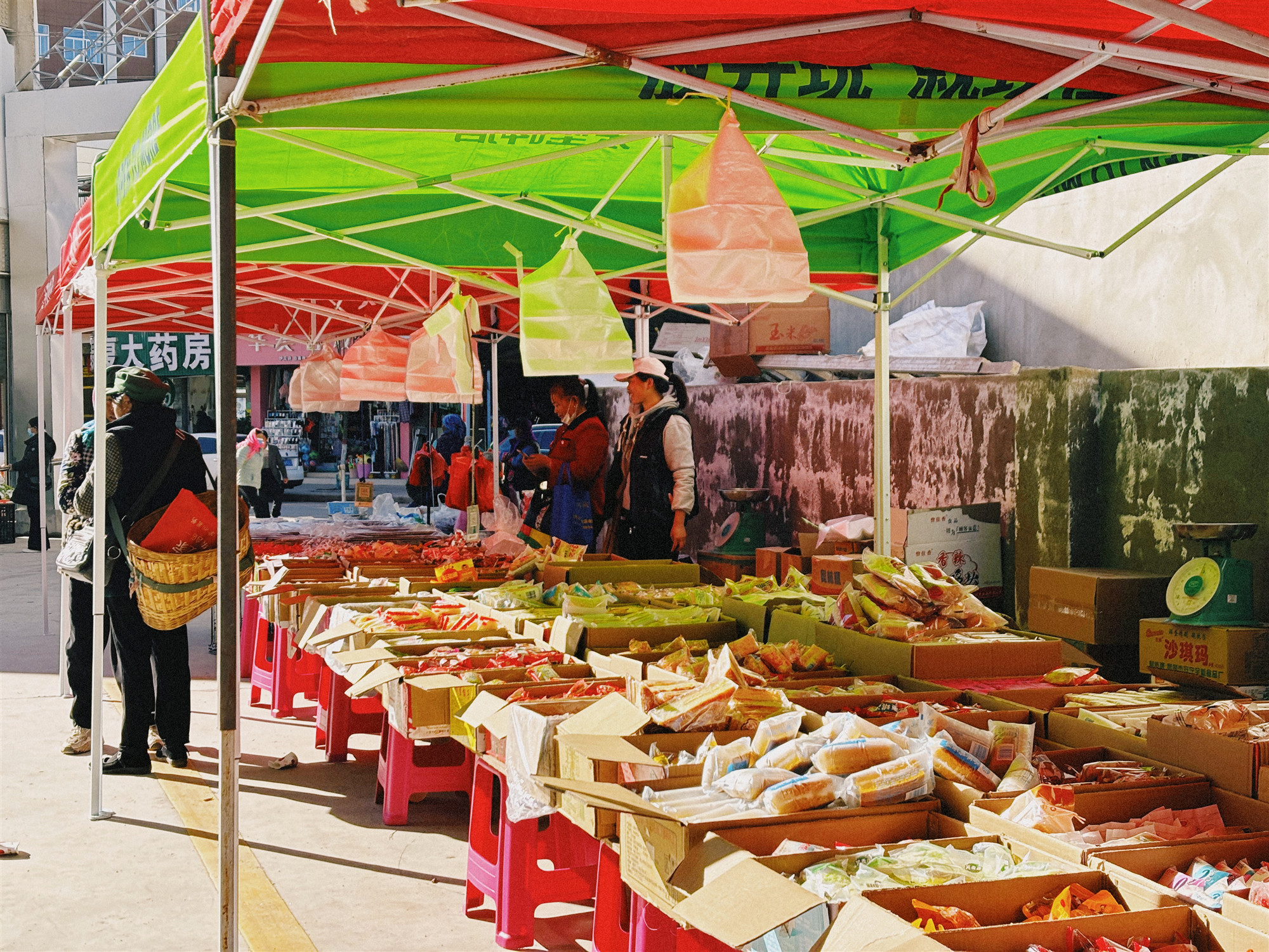 再往市场里面走,便是零食区了。这里汇聚了各种小吃和零食,有香脆可口的瓜子、甜蜜软糯的糖果,还有独具特色的地方小吃。小朋友们拉着父母的手,眼睛直勾勾地盯着那些诱人的零食,不肯挪步。