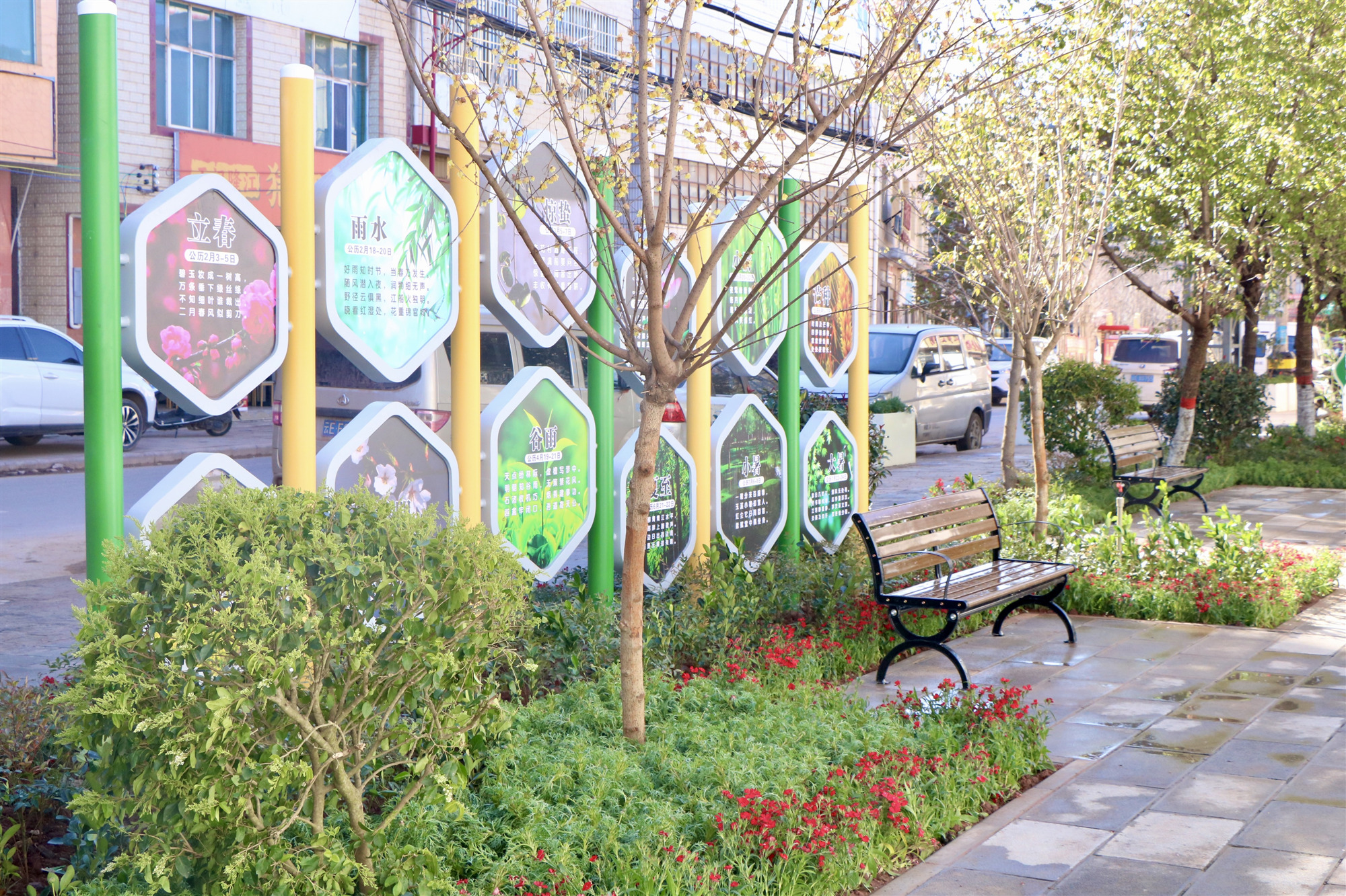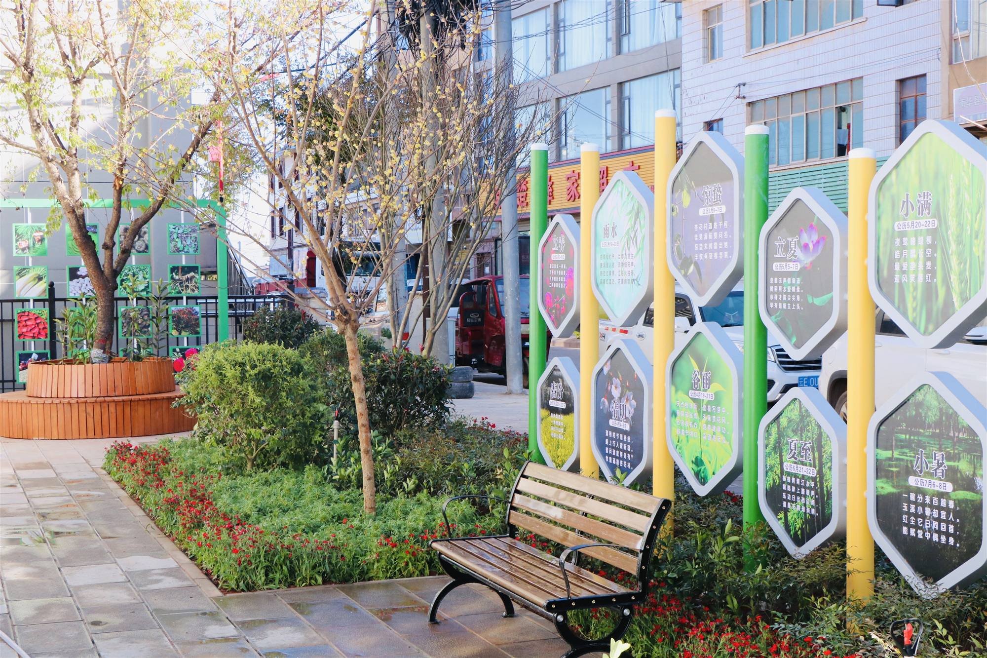 走进五街镇集镇,可以看到路边的口袋公园绿树成荫、花香四溢,为居民们带来了一片宁静与惬意。阳光透过树叶的缝隙洒在地上,形成斑驳的光影,让人倍感温馨与舒适。