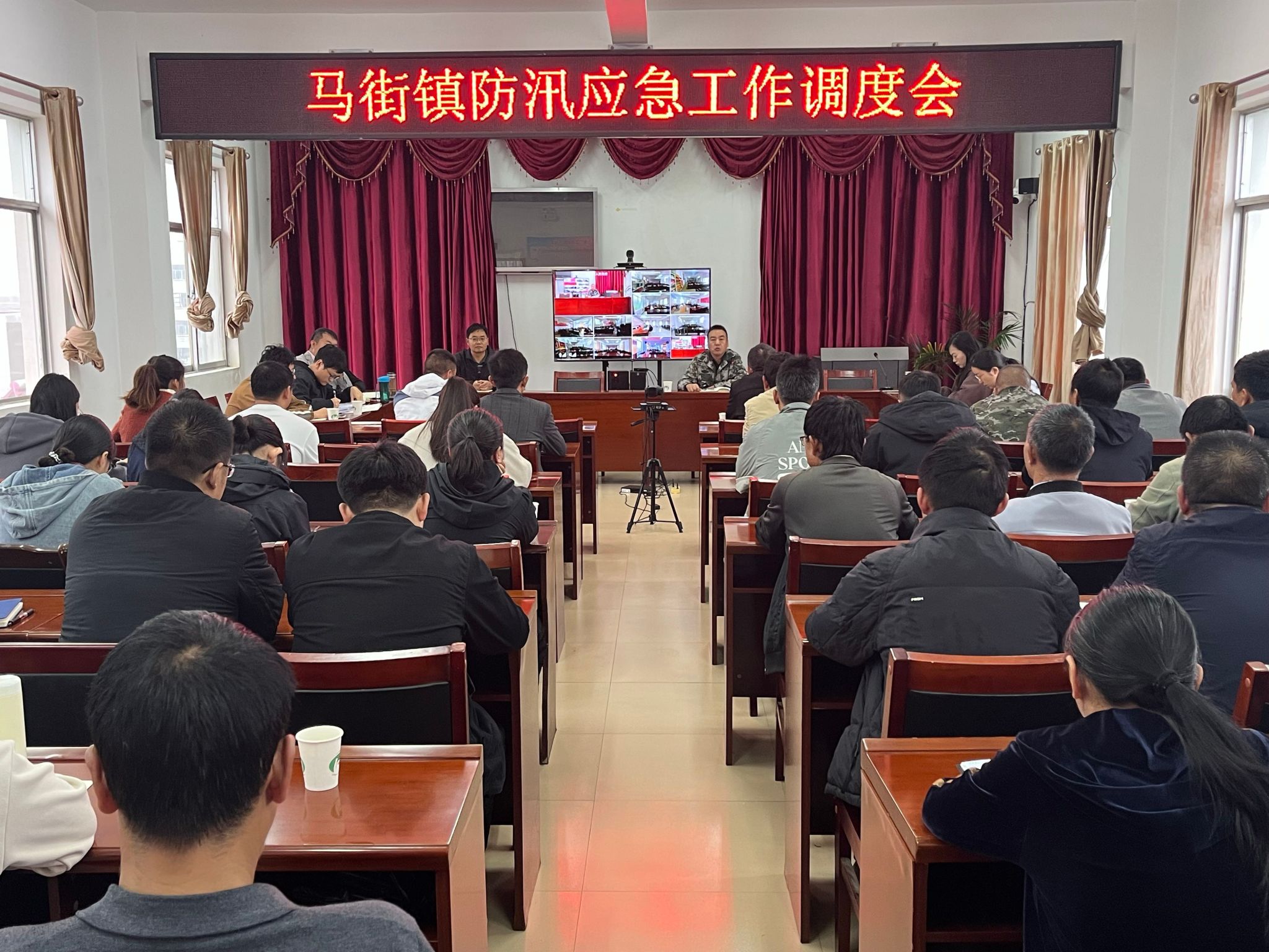 10月19日,为应对持续强降雨天气,马街镇全体干部周末无休,紧急召开防汛应急工作调度会议,对全镇防汛抢险救灾各项工作进行再研判、再部署,以实际行动筑牢防汛安全屏障, 确保人民群众生命财产安全。