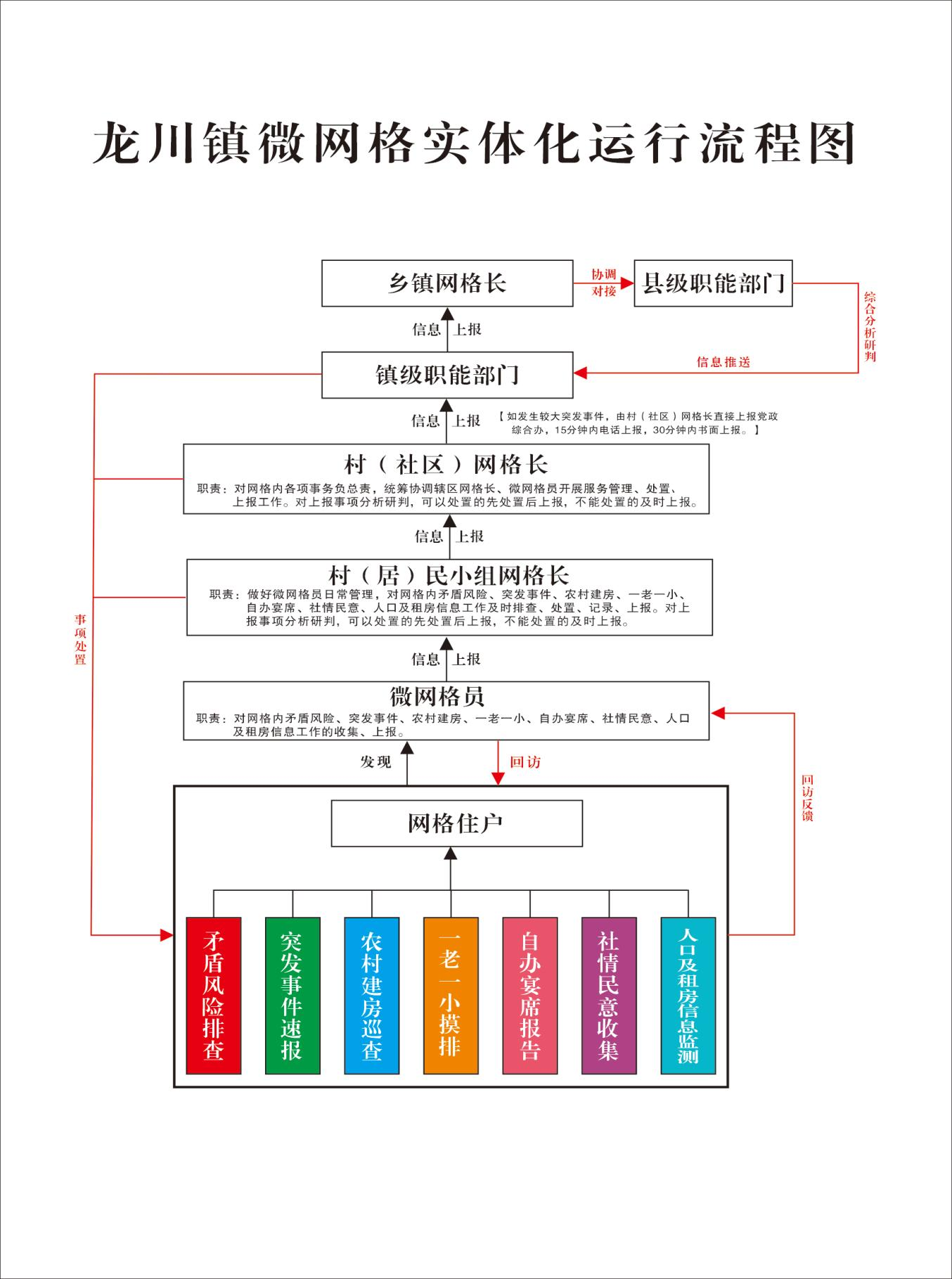 “‘微网格员’的工作便是将紧急情况第一时间上报,能做简单处置的进行处置。自工作开展以来,全镇共划细划小1812个城乡‘微网格’,配备总网格长29人,网格长545人,微网格员1673人,针对突发事件做了58次应急演练,这次突发事件的上报和处理均是按照演练流程来走,实现了网格耦合、力量整合、功能聚合、衔接配合、流程闭合、服务汇合。”龙川镇组织委员鲁宗洲介绍。