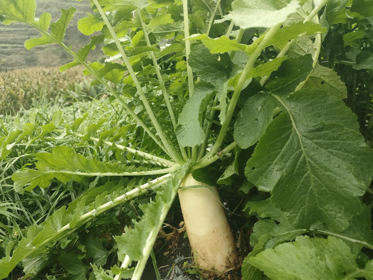 以“套种创新”破题,激活土地多元价值。罗武庄乡精准把握气候与作物生长规律,探索出关键衔接技术:在烤烟采收前20天,借助烟叶后期形成的遮阴保湿气候播种萝卜,为幼苗规避强光高温;待烟叶采收完毕、烟秆清理干净,萝卜恰好进入膨大关键期,能充分承接充足日照与昼夜温差,加速糖分和水分积累。两种作物“错峰生长、互不争肥”,让烟田全年利用率提升至95%以上。更形成生态闭环——萝卜根系疏松土壤、活化地力,减少烤烟连作病害,而烟叶残留的氮磷钾养分反哺萝卜,最终种出的萝卜兼具表皮白净光滑、肉质脆嫩多汁、口感清甜无渣的特质,生食爽脆回甘,腌制后风味浓郁。