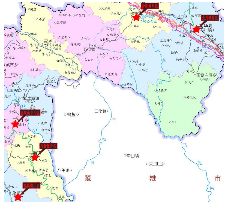 (项目区5个乡镇地理位置图)