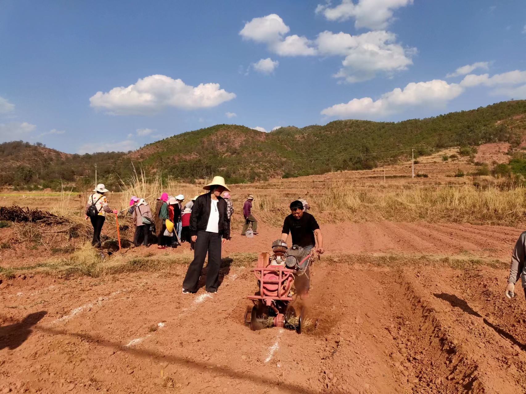 “正月十五一过,今年春耕备耕工作就开始了。”来自雨露村的农机手何应平在拖拉机上操作摇杆,不时回头查看作业进度,“请我翻耕的人也多,忙的时候一整天从早干到晚,正常情况下一天翻十五六亩地是没有问题的。”不远处,农户们拿着锄头做翻耕、覆土等农事活动,农机轰鸣声、农户欢笑声交织在一起,奏响了一曲田野春耕交响曲。经过翻耕作业,沉睡了一个冬天的土地舒展“筋骨”,沐浴着春日暖阳。