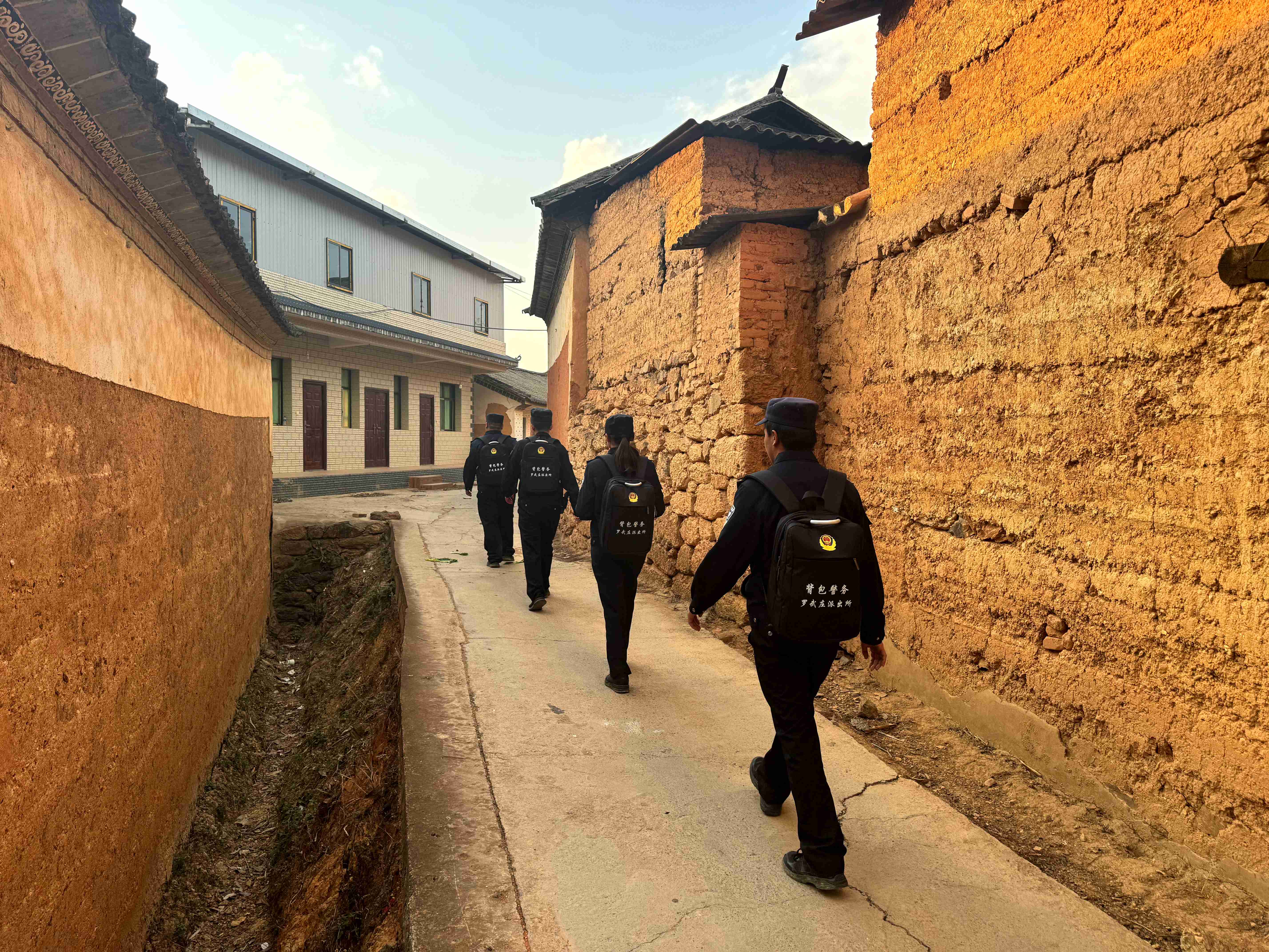 夕阳西下,一群背着背包的警察走在街巷阡陌,背包带在警服上勒出的印记,恰似连接警民的血脉纽带。在罗武庄乡这片红土地上,书写着“警务围着民意转,民警围着百姓转”的温暖故事。