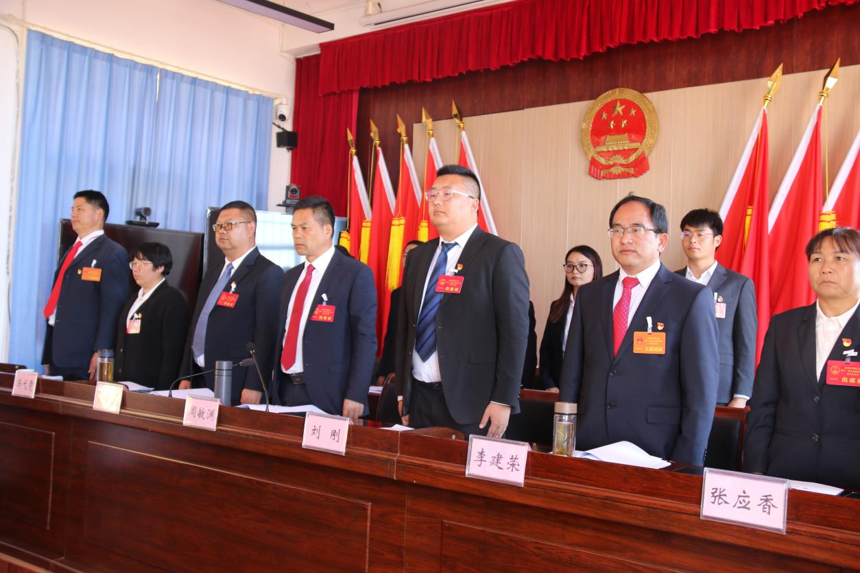 大会现场气氛庄重热烈,国徽高悬,红旗鲜艳。在庄严的国歌声中,会议正式拉开帷幕,参会人员全体起立,唱响国歌。