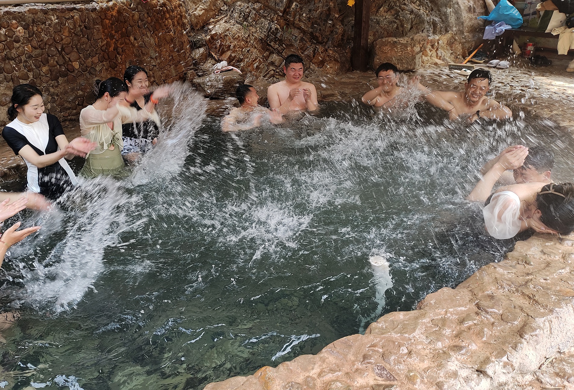 活动中,游客们纷纷入池体验温泉,在这里,听着泉水叮咚的声音、看着秀丽的山川美景、沉浸式泡着温泉,时间仿佛变得缓慢而悠长。泡完温泉后,大家一同看美景、赏歌舞、品美食,现场氛围轻松活跃,人们在休闲放松的同时更加深了对黑泥温泉的印象。