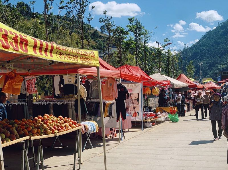 目光所及,更是一片斑斓。卖衣裳的摊子上,挂满了当季最时兴的花色;一旁的铁器摊前,老师傅正弓着腰,“噌噌”地磨着一把剪刀,那声音沉稳而富有节奏,像是在为整个集市打着拍子。再往前走,就是充满“舌尖诱惑”的小吃摊位:酸甜可口的手打柠檬茶、酥脆焦香的烤鸡腿、麻辣爽口的炸洋芋……让人垂涎欲滴。