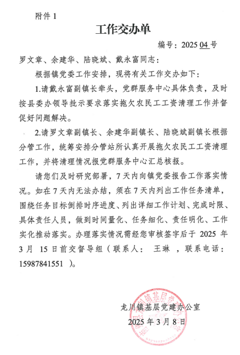 比学赶超“效”,立说立行提质效。引导全体干部职工牢固树立“今天再晚也是早、明天再早也是晚”的效率意识,紧盯工作重点,弘扬“马上就办、真抓实干”的优良作风,践行“三法三化”。精准落实责任分工,破除“守摊子”“等靠要”等消极思想,践行主动思考、扎实干事、注重效果的工作“三部曲”,严格落实马上就办、马上反馈的要求。建立问题交办督办机制,明确交办督办清单,重点围绕领导指示批示和重要任务,罗列交办清单交相关责任单位承办。截至3月中旬,已发出4张工作交办清单和1张警示催办单。镇纪委同步督查督办,对交办问题实行清单化管理,逐项“销号”,对未按规定完成任务的责任人严肃追责问责并限期整改,全力提升工作效能。