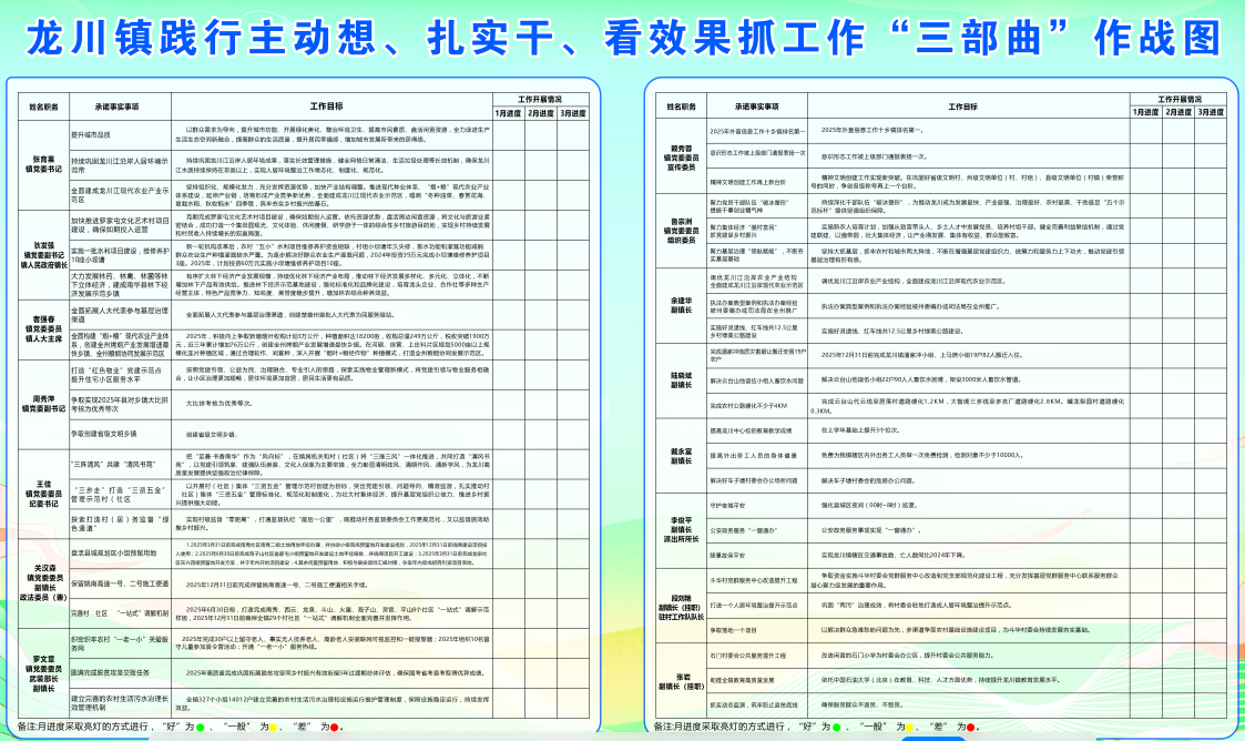 持之以恒“学”,激发工作新动能。将强化学习教育作为开展作风革命效能革命的重要切入点,组织理论学习中心组集体学习1次、召开专题会议4次、周一例会学习11次,深入传达学习习近平总书记关于加强党的作风建设的重要论述,增强“八项本领”、提升“七种能力”的重要要求。全镇干部将本职工作置于全镇发展大局中思考、定位与统筹,班子成员、站所长和29个村(社区)开展2025年“三件实事”谋划,以优良的作风和行动推动全镇重点工作做深做实,龙川镇已连续三年在“干在实处,走在前列”大比拼考评中荣获全县第一。