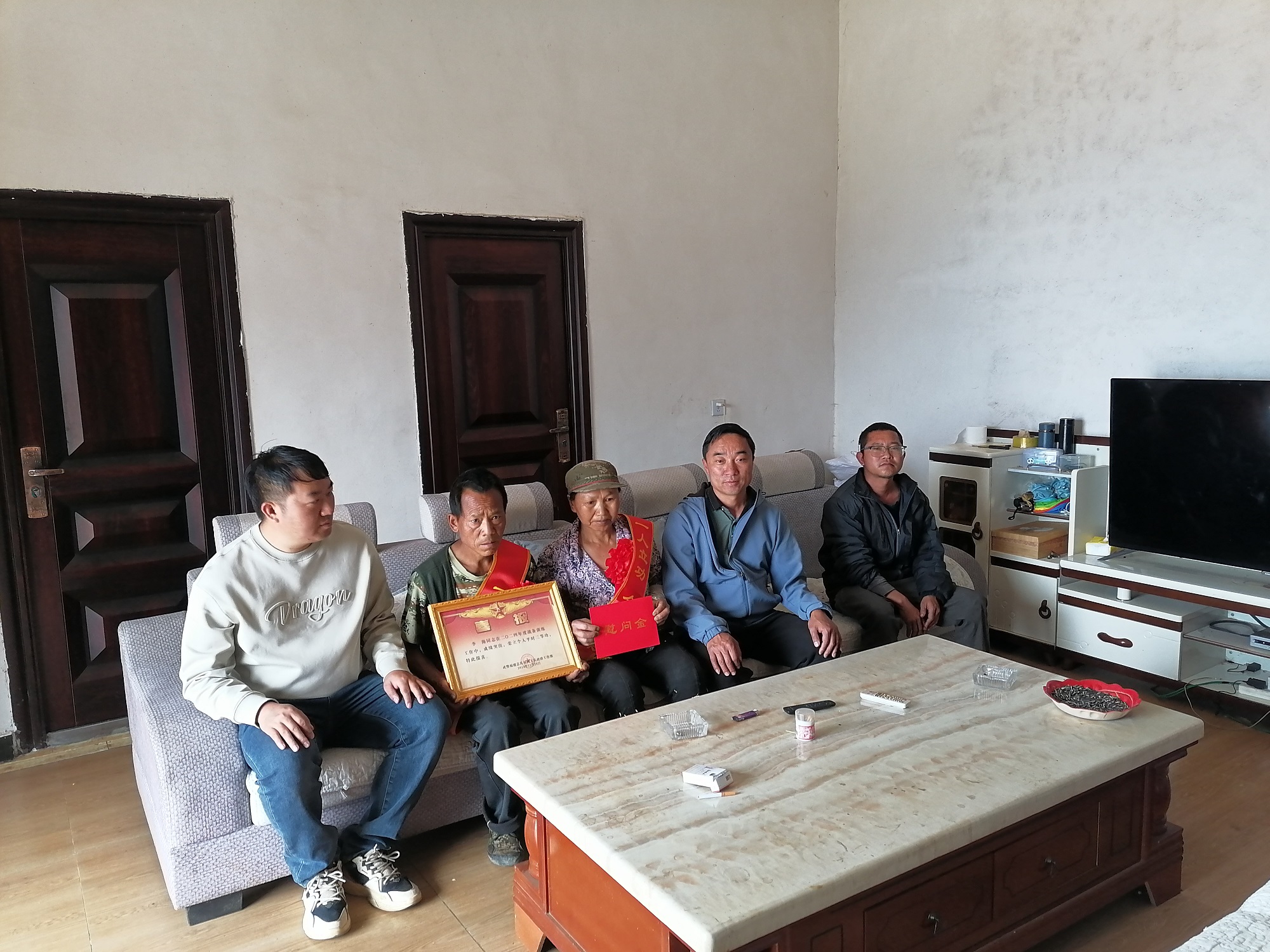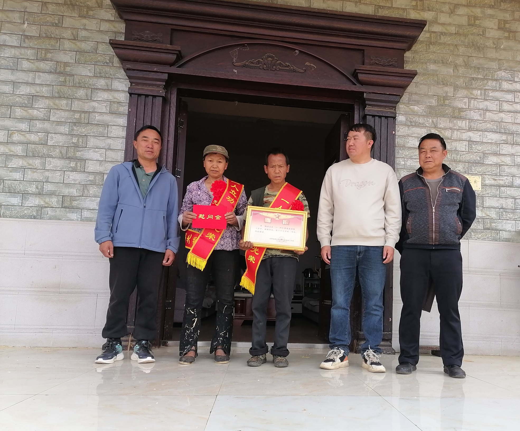 “恭喜恭喜,您儿子在部队荣立了三等功!”马街镇武装部部长、镇退役军人服务站工作人员向军属递过喜报和慰问金,对他取得三等功的光荣佳绩表示祝贺,对李海同志在工作中顽强拼搏、爱岗敬业、奋勇争先的优良品质给予高度评价,并向他们传达了党委、政府和部队的深切的关怀和衷心的感谢,感谢他们为国家、为部队培养了优秀人才,为家乡赢得了荣誉。
