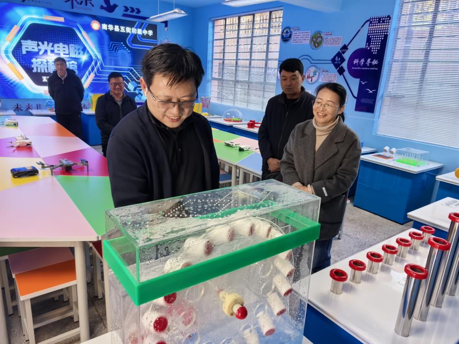 3月26日,南华县人民政府副县长李骏扬到五街初级中学检查至善科技馆建设工作。