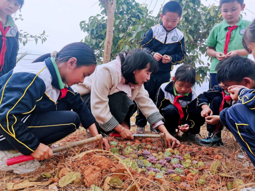 阳春三月,草长莺飞,植树节这天,红土坡中心学校开展多肉种植活动,将劳动教育与生态文明建设有机融合,组织全校师生通过种植多肉植物扮靓校园环境,培养青少年生态文明意识,构建特色劳动教育体系。