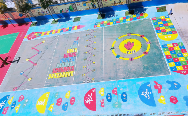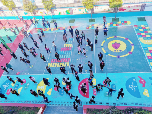春日暖阳下,红土坡镇中心学校的操场焕发新彩—教师们化身“创意设计师”,利用课余时间,亲手绘制地面游戏,将有限的校园空间转化为融合运动、学习与红色教育的“立体课堂”,将校园打造成学生的“游乐场”,以低成本、高创意的方式赋能学生全面发展。