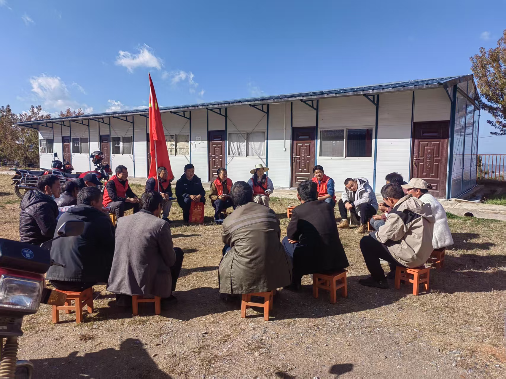 当汽车穿过最后一道道山隘,阳光突然如瀑布般倾泻而下,漫山遍野的绿意渐渐褪去,赭红色的土地在车轮下绵延,远处层叠的峰峦托着云絮,近处错落的民居升起炊烟—这是2023年盛夏,我与红土坡初遇的模样。攥着行李箱把手的掌心沁出薄汗,却听见胸腔里蓬勃的心跳,“这片被群山环抱的热土,是未来我要奋斗两年的地方。”