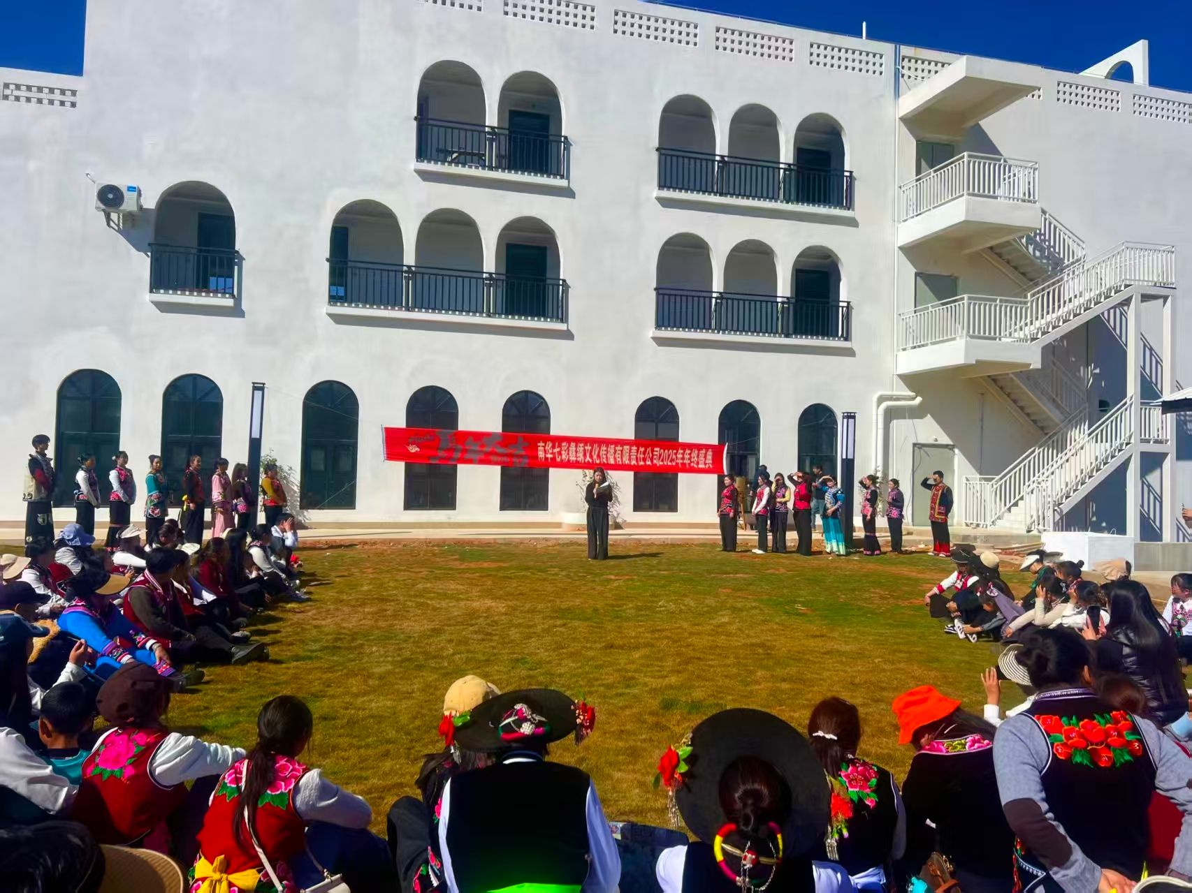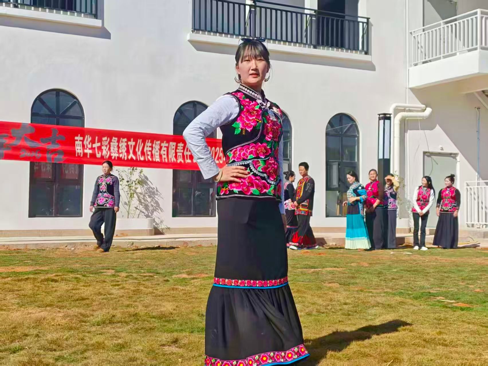只见身着彝绣服饰的姑娘们