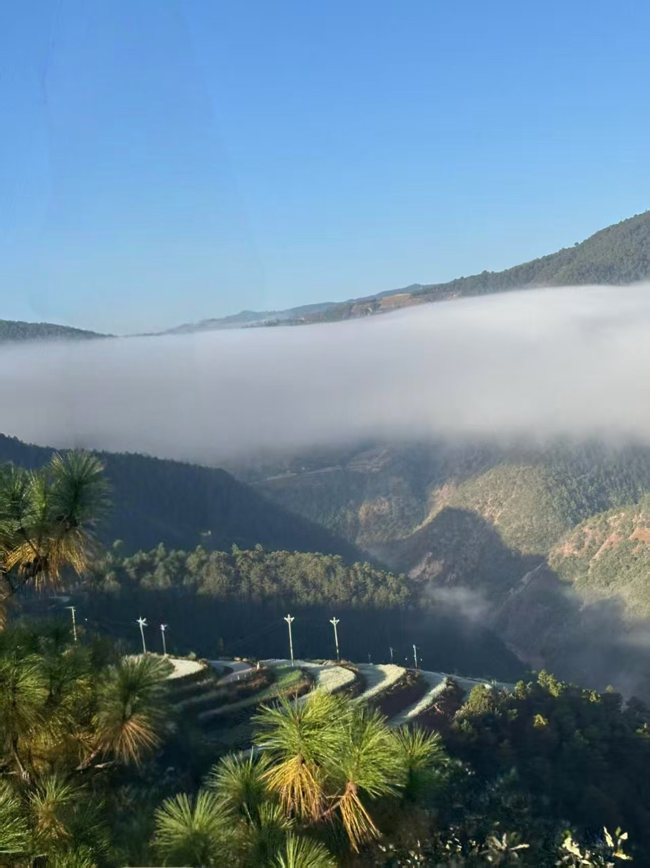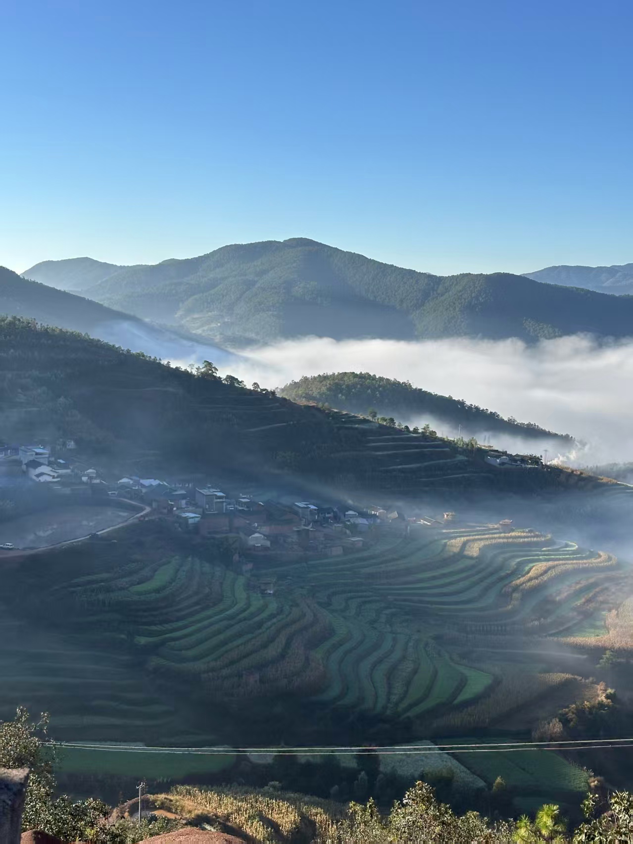 冬日清晨,一场薄雾如轻纱般漫卷,将南华县雨露乡村庄悄然裹入一幅流动的水墨长卷中。在雾霭的晕染下,环绕村庄的萝卜籽与麦田透出蓬勃生机,为萧瑟的时节晕染出温润的诗意,悄然铺陈着乡村生态与农业发展的新篇章。