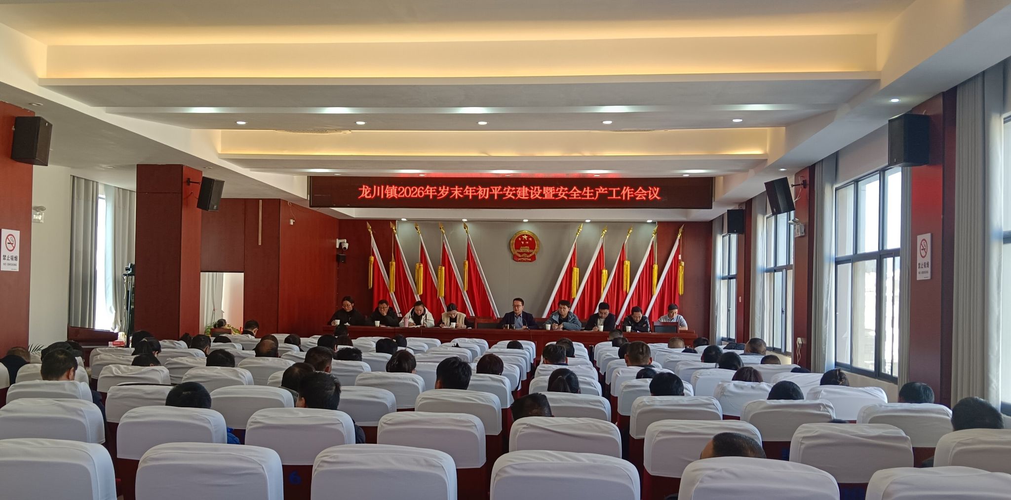 1月9日,龙川镇召开2026年岁末年初平安建设暨安全生产工作会议。镇党政班子成员、五办三中心一队主任、副主任(队长、副队长)、上管单位负责人等80名干部参加会议。