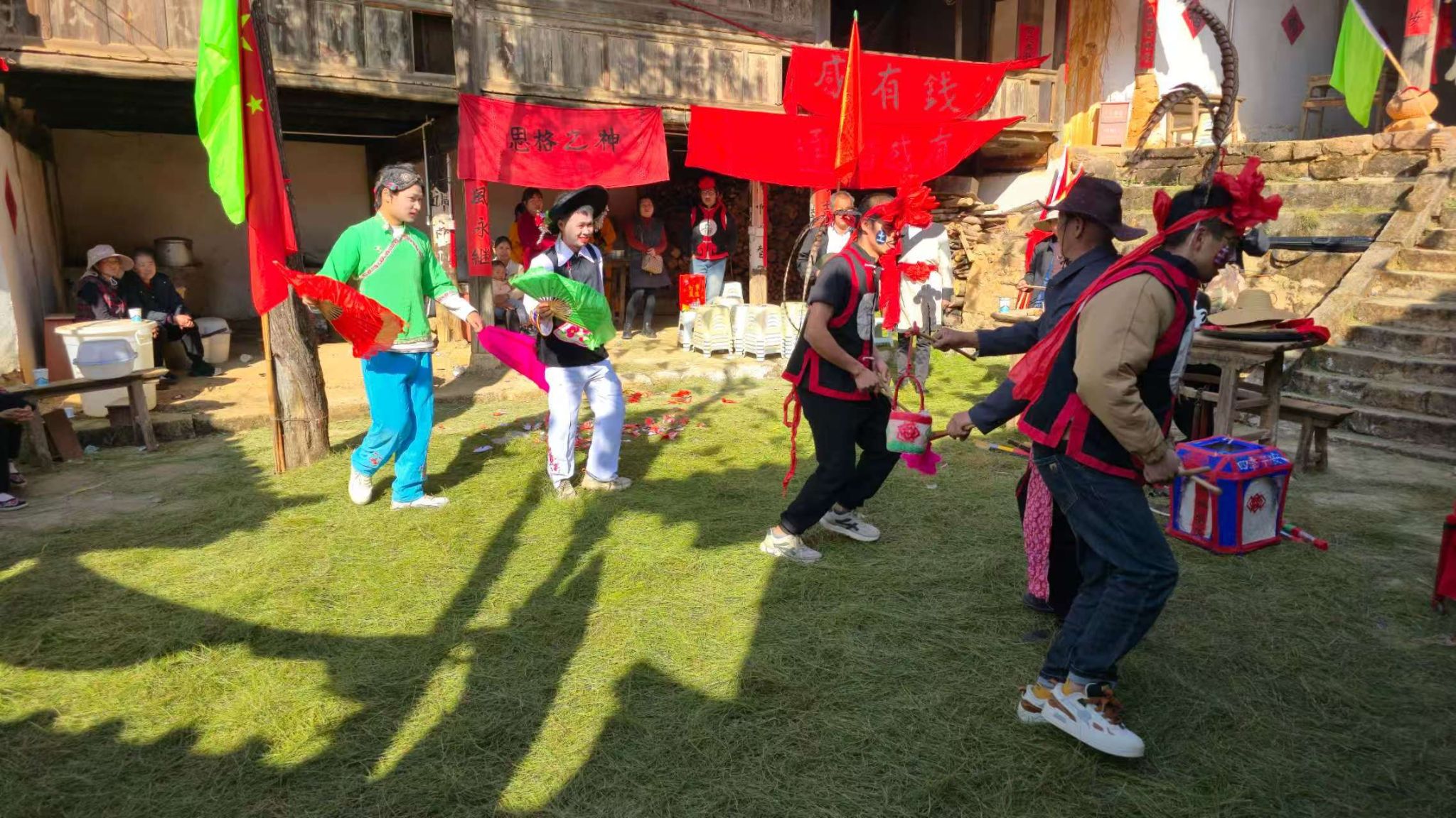 灯班艺人以白语原声演唱,反串演绎经典曲目,《打花鼓》《官老爷巡四方》等二十余出传统剧目无谱口传、代代相承。质朴唱腔藏着乡土温情,一唱一和间尽展白族民俗独特韵味。