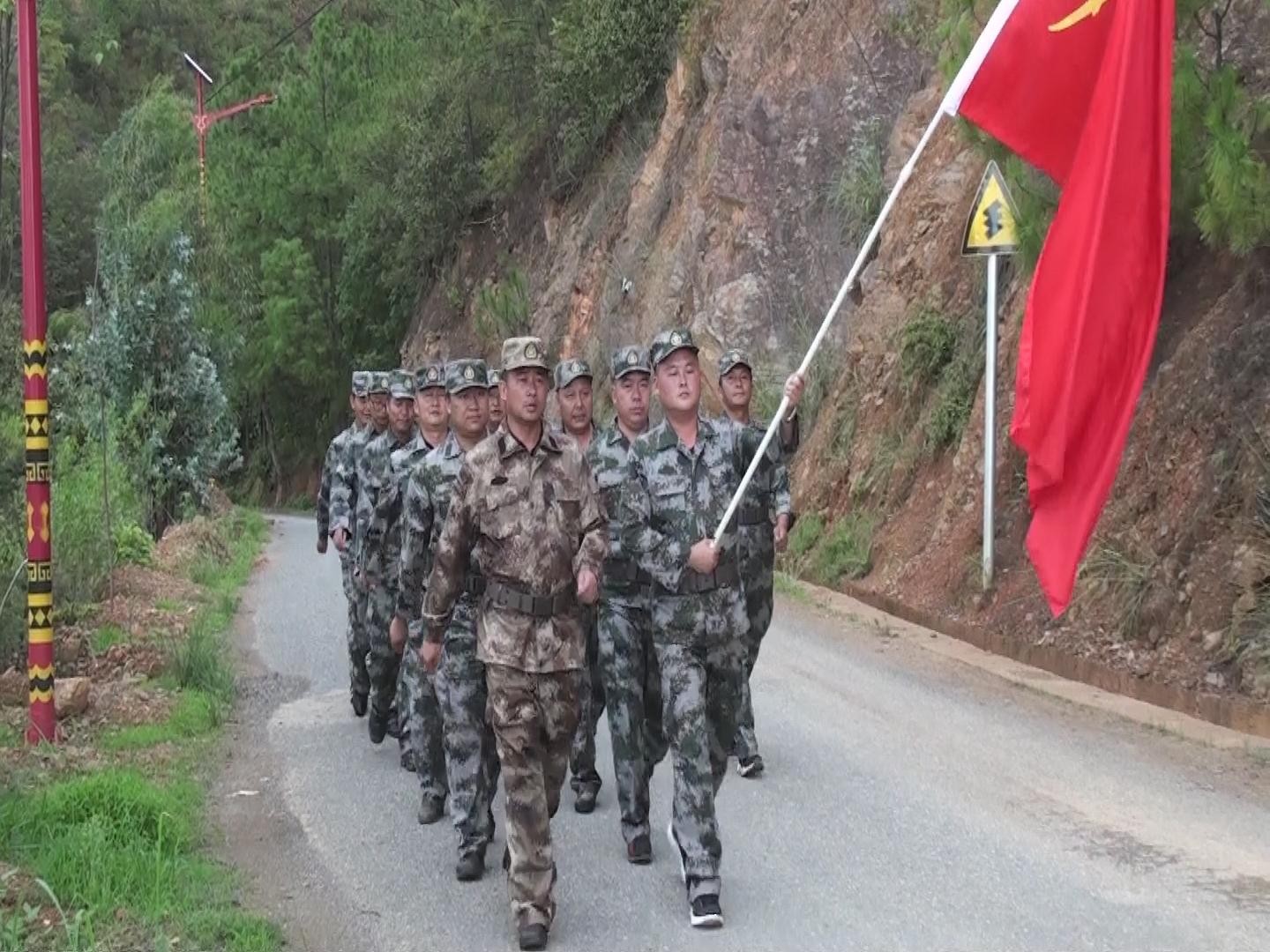 座谈会结束,退伍老兵整装出行,徒步2公里到防雹点。