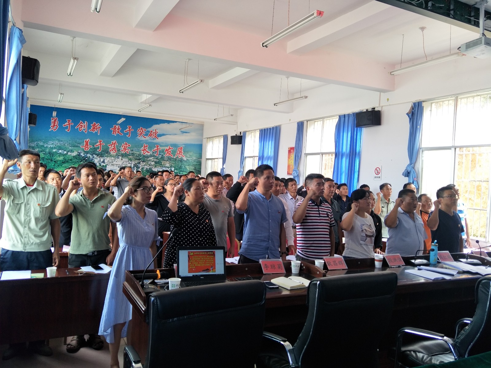参训学员通过云岭先锋AAP扫苗二维码签到入场,培训内容分为13个专题,邀请县教体局派驻树密鮓村委会驻村工作队队长李洪旺老师,以“不忘初心跟党走、牢记使命勇担当”为主题,开展学党史、感党恩专题辅导。县委党校派驻罗武庄乡三家村委会驻村工作队长罗成亮老师为宣讲《中国共产党章程》及体会,县委党校高级讲师许鸿英讲授习近平新时代中国特色社会主义思想和党的十九大精神。部分乡领导班子成员、相关站所长结合分管工作开展专题宣讲,内容涵盖了《中国共产党支部工作条例(试行)》《中国共产党农村基层组织工作条例》、《中国共产党党员教育管理工作条例》、网上支部建设、庆祝新中国成立70周年以及扫黑除恶专项斗争、脱贫攻坚、党纪党规等相关知识,观看了党性教育专题片《十八洞村》。羊歇地村党总支、树密鲊大村党支部、中心校党支部分别派出学员进行学习心得交流。