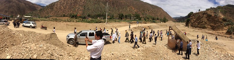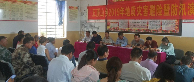 南华县五顶山乡2019年设小型地质灾害监测点9个,其中:滑坡点7个、泥石流点2个,分布在全乡5个村民委员会9个村民小组,威胁群众82户366人、威胁财产991万元。为高效有序地做好突发地质灾害应急防治工作,避免或最大限度地减轻灾害造成的损失,维护人民群众生命财产安全和社会稳定,近日,五顶山乡组织乡地质灾害及山洪灾害预防成员单位,各监测点人员,监测点群众等90余人在鼠街村委会卢芒科村民小组开展综合应急演练。通过应急演练培训,进一步提高了群众防灾减灾应急处置能力,确保一旦险情出现时能够及时、安全、有序、按预定线路撤离到安全避险场所。