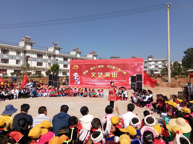 为深入推进东西部扶贫协作和对口支援,进一步拓宽文化帮扶和文化援助渠道,推动两地文化共融交流,由南翔镇和南华县两地优秀的文化团队为当地干部群众送上一场高品质、高水平的文化盛宴。文艺演出活动内容丰富,有群舞《小笼师傅》、说唱《上海的早晨》、彝族舞蹈《彝花》、女声小组唱《古镇风情》等。该乡干部群众对文化团队精彩的表演赞不绝口。最后,文化志愿服务队员和干部群众一起同声歌唱《我和我的祖国》,现场观众挥舞着鲜艳的红旗,为祖国富强喝彩,为神州华夏祝福。