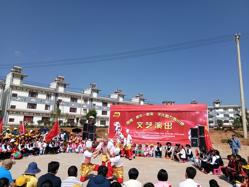 5月30日上午,南华县雨露白族乡杨方坝广场,人头攒动,欢笑声、歌舞声不断,由上海市嘉定区南翔镇和南华县共同主办的“南翔·南华一家亲,文化助力奔小康”文艺演出活动走进雨露乡。
