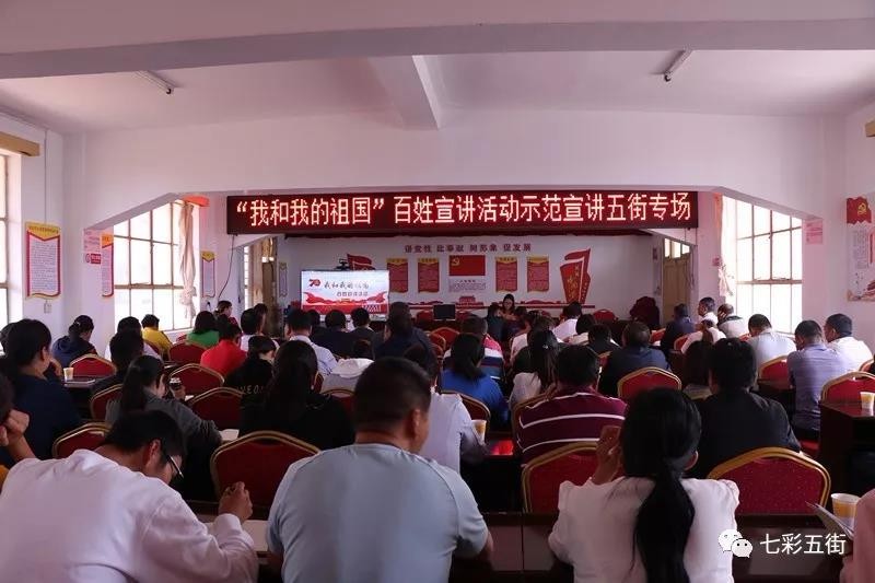 为全面贯彻落实党的十九大和十九届二中全会精神,增强“四个意识”、坚定“四个自信”、做到“两个维护”,在中华人民共和国成立70周年之际,县委宣传部、县总工会、团县委、县妇联联合在全县开展以“我和我的祖国”为主题的百姓宣讲活动,示范宣讲五街专场于9月17日下午圆满结束。五街镇党政班子成员、镇村干部、驻村工作队员等70余人参加了宣讲会。