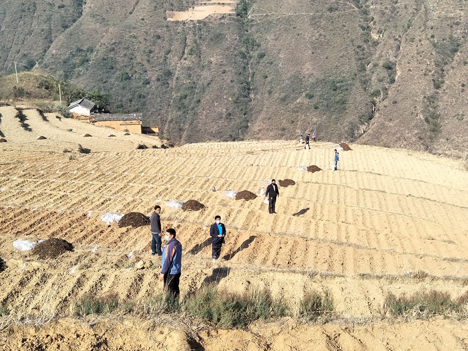 目前,该乡烤烟营养土堆捂已全面完成,预整地放线、理墒等劳作场面随处可见。