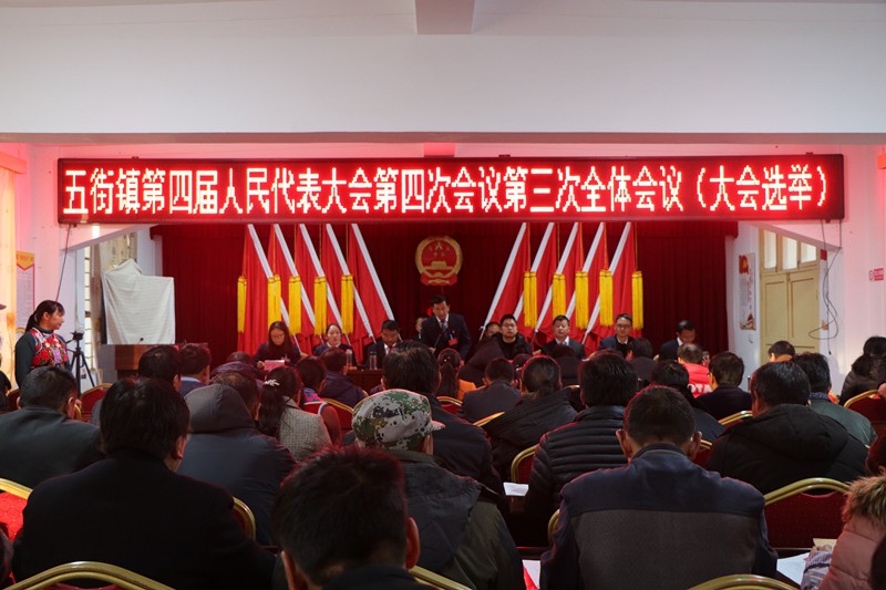 1月7日至10日,五街镇召开第四届人民代表大会第四次会议,镇人大代表和列席人员共99人参加了会议,县委指导组到会指导并发表讲话。
