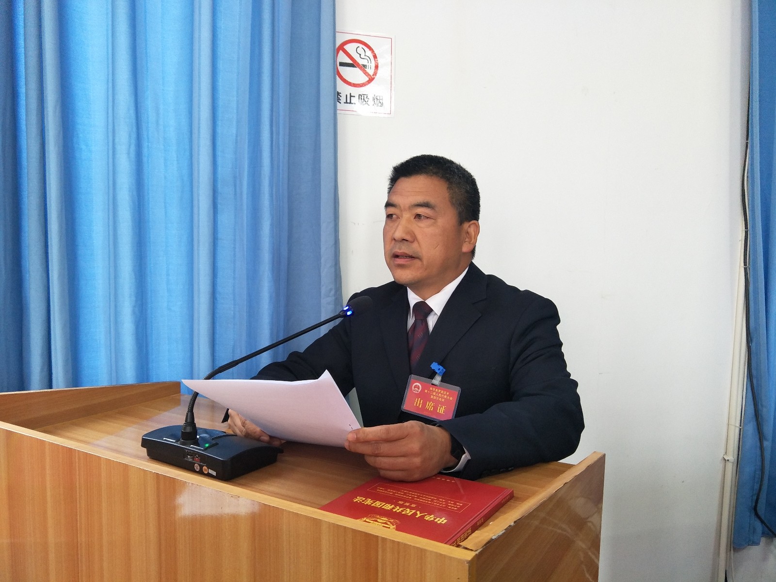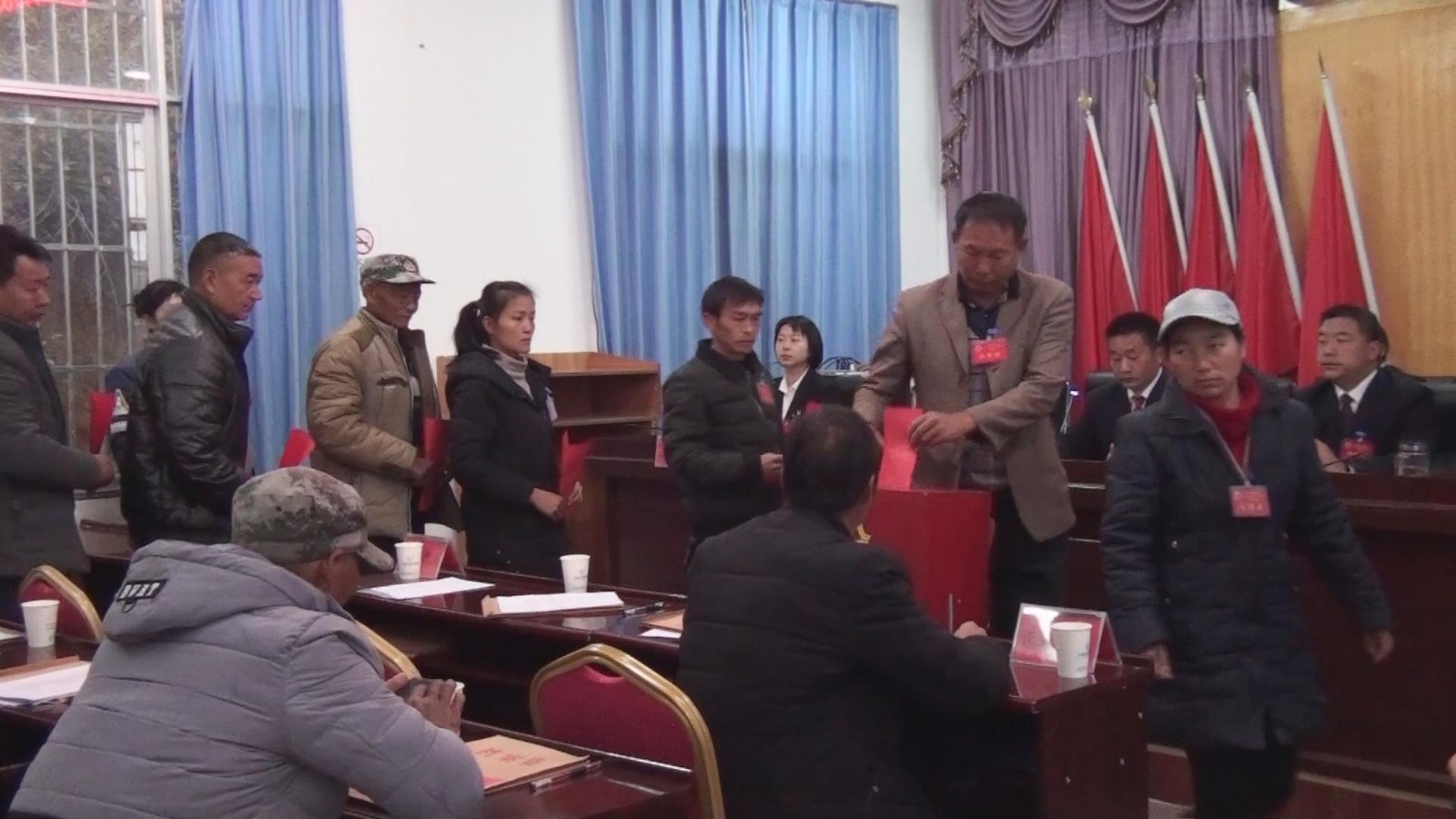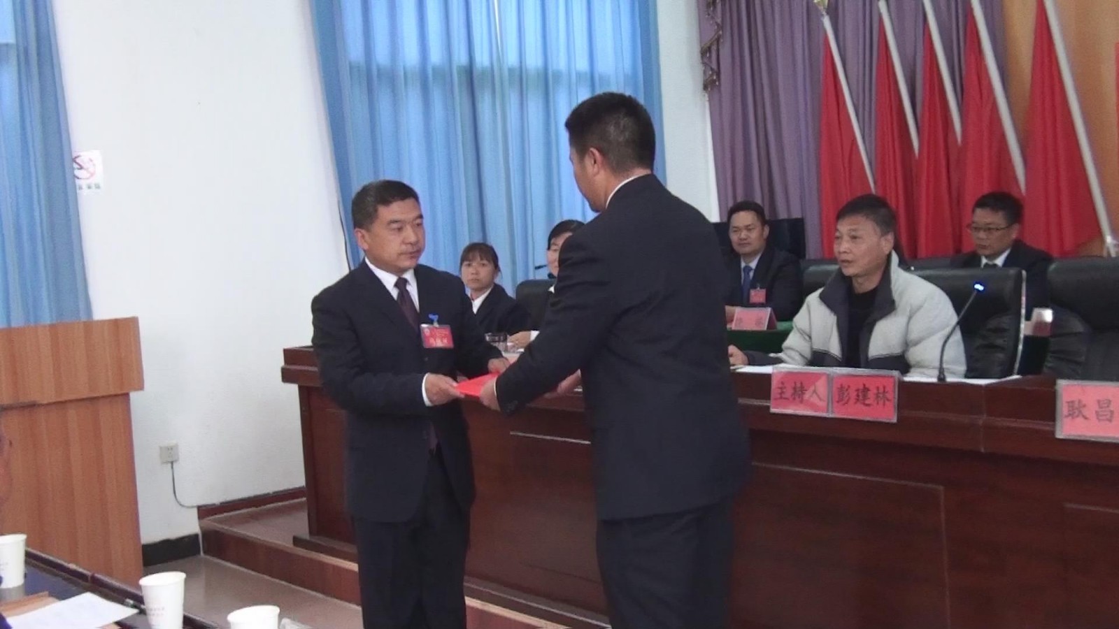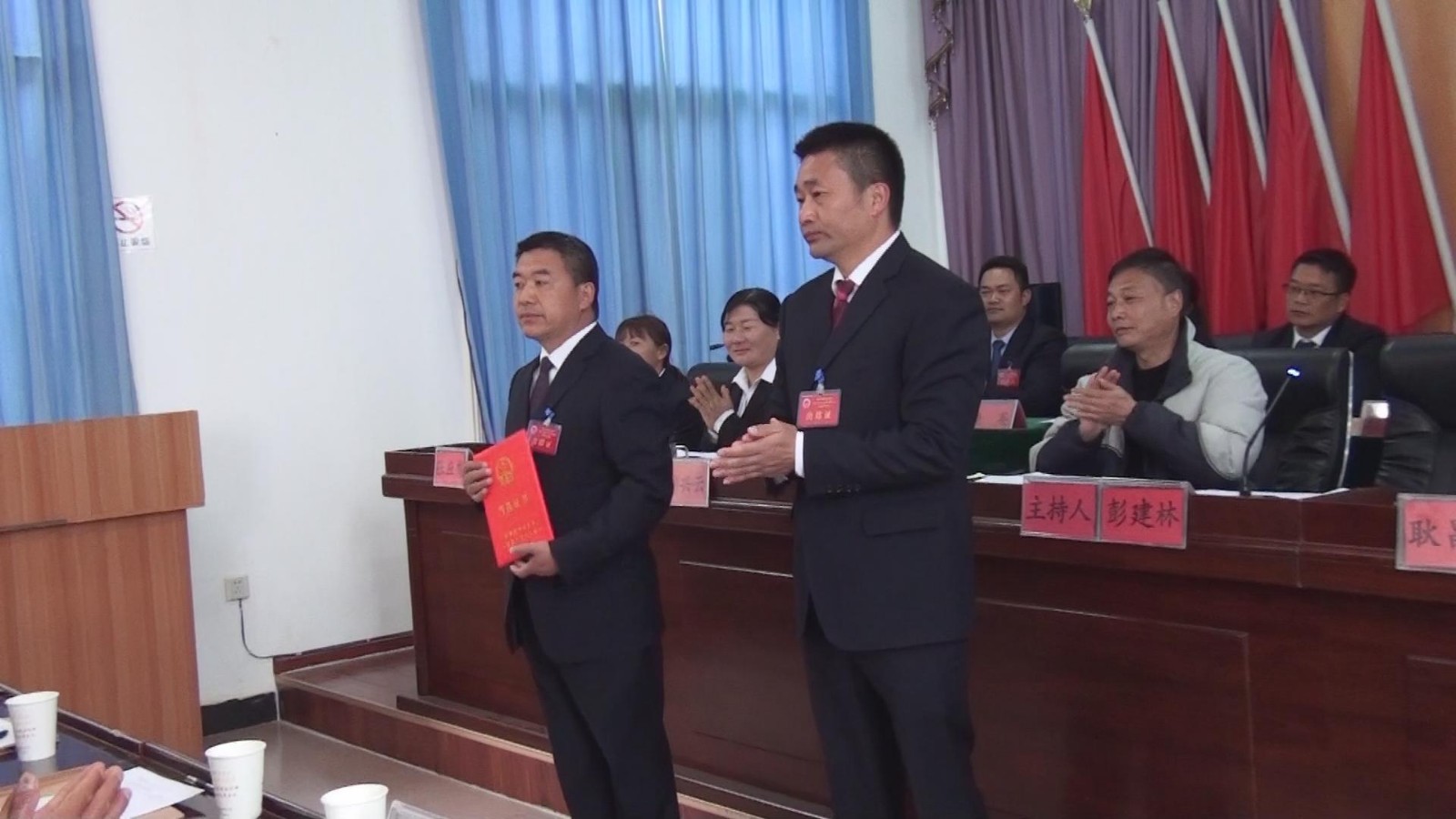 乡党委书记彭建林为新当选的人大主席周兴云颁发当选证书