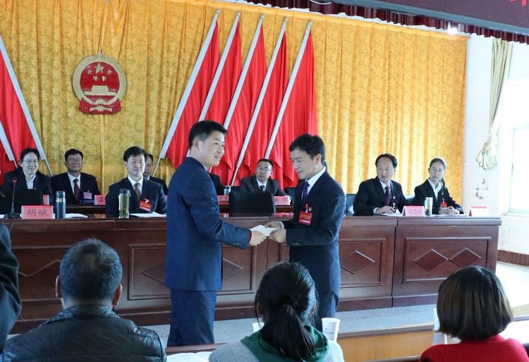 根据《选举办法》和计票结果,杨明成当选为雨露白族乡第十二届人民政府乡长。为新当选的雨露白族乡第十二届人民政府乡长颁发当选证书,公开向宪法宣誓。