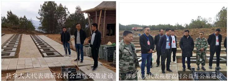 强化视察调研。围绕殡葬改革和农村公益性公墓建设的选址、规划、建设等工作,多次组织县乡两级人大代表开展实地调研和集中视察活动,广泛征求代表意见建议,为党委、政府科学决策提供依据。乡党委、政府在反复调查研究、多方论证、集思广益的基础上规划建设五顶山乡营盘山公益性公墓,该公墓一期建设项目规划占地面积10亩,完善管护用房、公厕、焚烧炉等设施,努力开创全乡殡葬改革事业新局面。