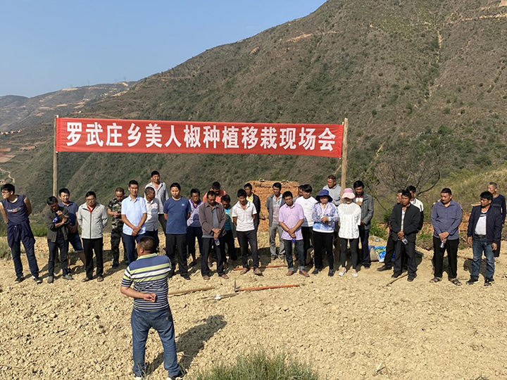 5月18日,该乡组织村委会、部分辣椒种植大户和贫困户50余人参加美人椒种植移栽现场会,美人椒种植技术人员从美人椒移栽、中耕管理、病虫害防治、施肥、地膜覆盖、除虫农药选择等种植技术方面进行了详细讲解,并进行了现场移栽教学。