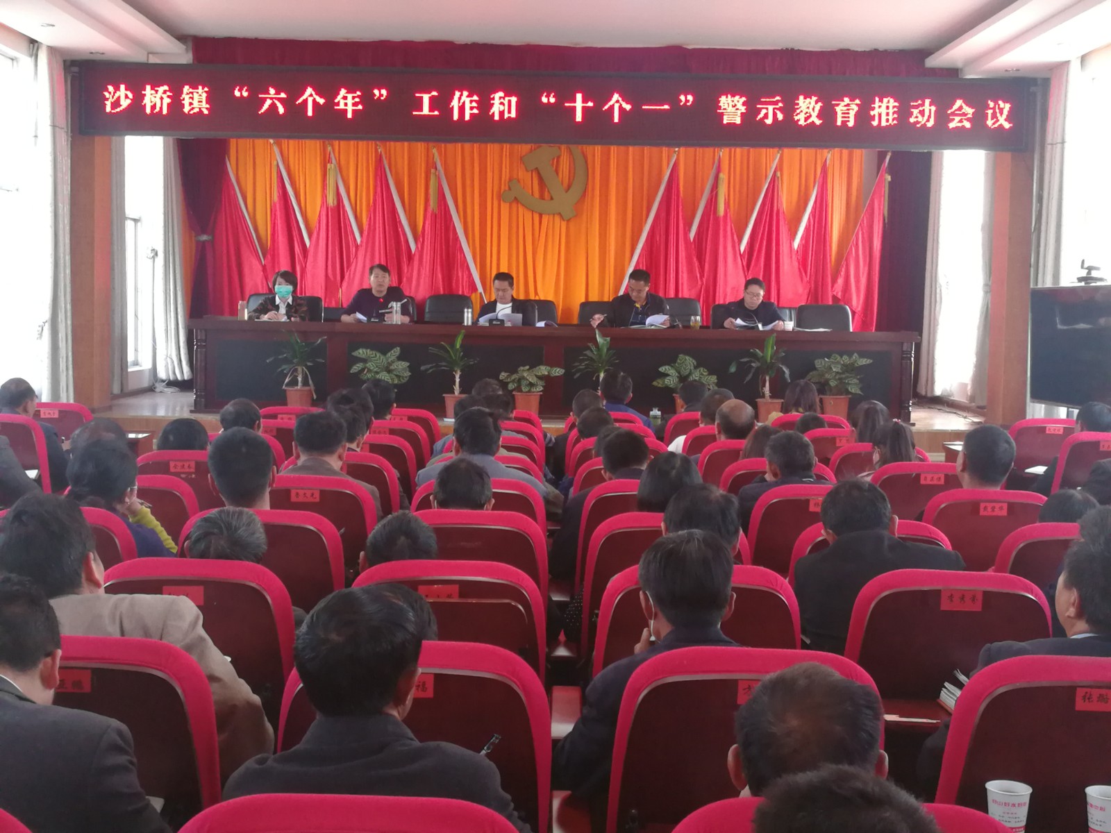 3月31日,沙桥镇召开全面从严治党“六个年”工作和“十个一”警示教育推动会暨2020年第一次调度会议,镇班子成员、机关全体党员、村“四职”干部120余人参加了会议。