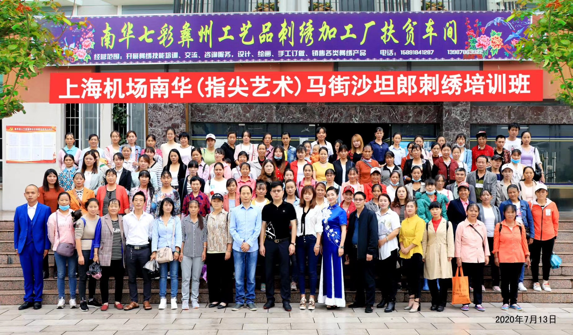 7月18日下午6时,南华县马街镇沙滩郎彝族刺绣培训班圆满完成全部培训课程,来自沙滩郎村委会30名建档立卡贫困户学员全部结业。此次培训班是由上海国际机场出资,南华七彩彝州工艺品刺绣加工产扶贫车间承办,旨在为建档立卡贫困劳动力掌握一门创业技能而开展的专题培训。